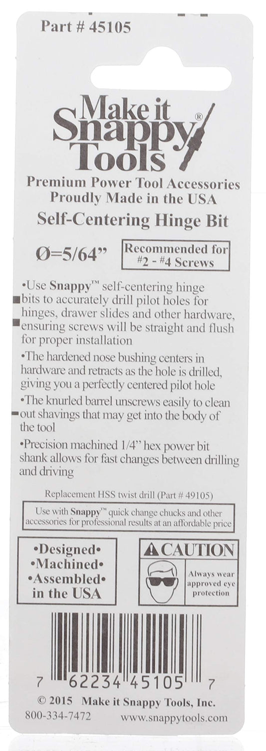 Make it Snappy Tools 5pc Self Centering Hinge Drill Bit Set, Spring Loaded. Proudly Made in the USA.