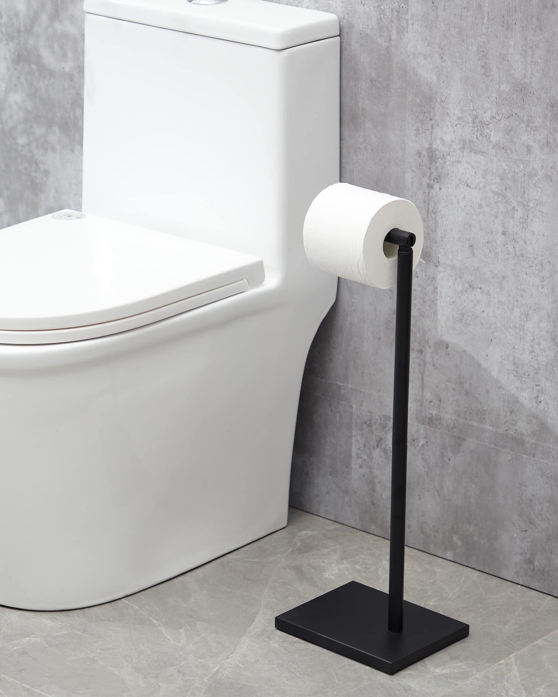 - Free Standing Bathroom Toilet Paper Holder Stand with Reserve, Stainless Steel Pedestal Tissue Roll Holder, Black DECLUTTR