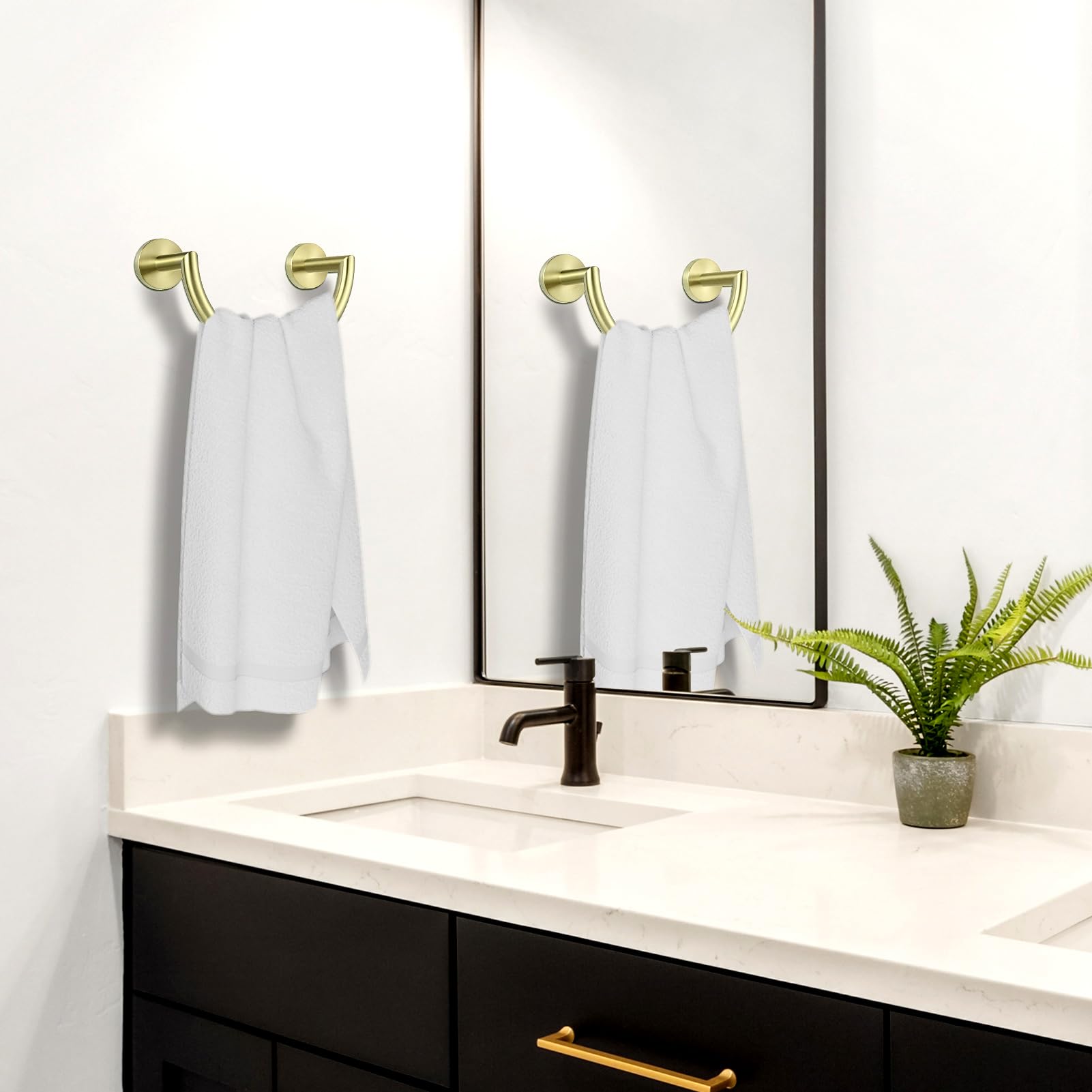 - HouseAid Stainless Steel Towel Ring for Bathroom, Hand Towel Holder, Modern Semi-Circular Hand Towel Rack, Wall Mounted, Brushed Gold