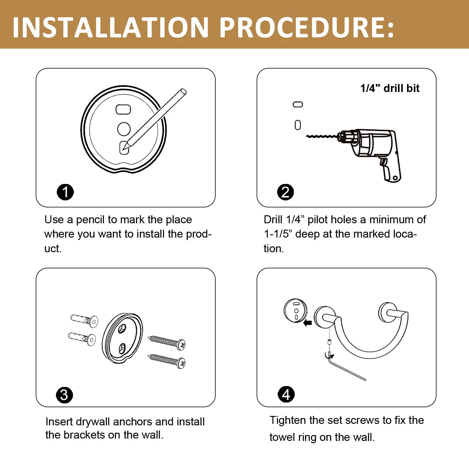 - 【SOLID & STURDY】This bathroom towel ring is made to use for more than 10 years. The wall-mounted installation method makes the towel ring sturdy and durable.
