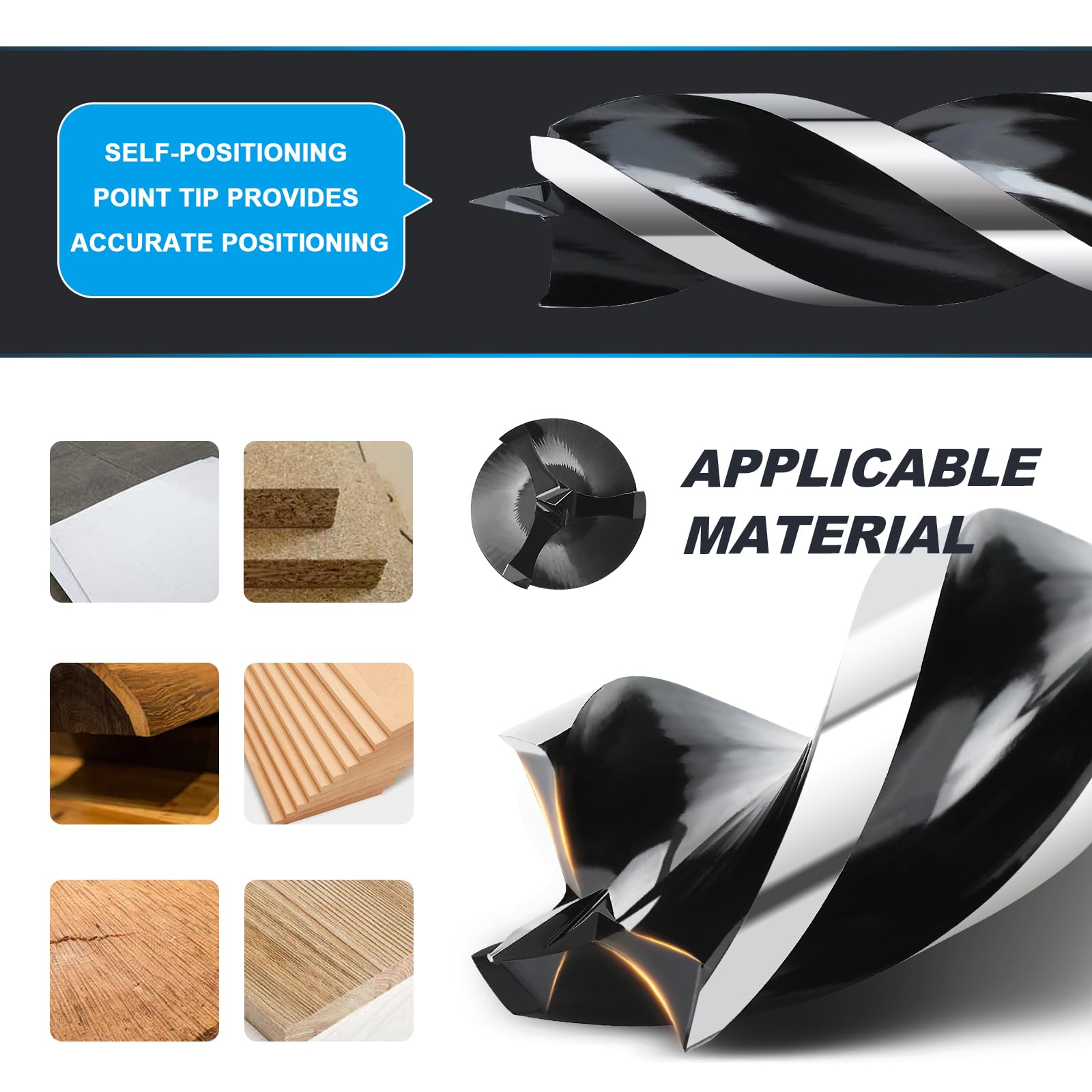 - Tri-Flute Design:Tri-Flute cutting flute is precision-milled with hollow centers to expedite chip clearance,Suitable for drilling into both soft and hard woods,MDF,plywood,lumber,landscape timber,and for installing PVC pipes or boring tree stumps(not for metal).