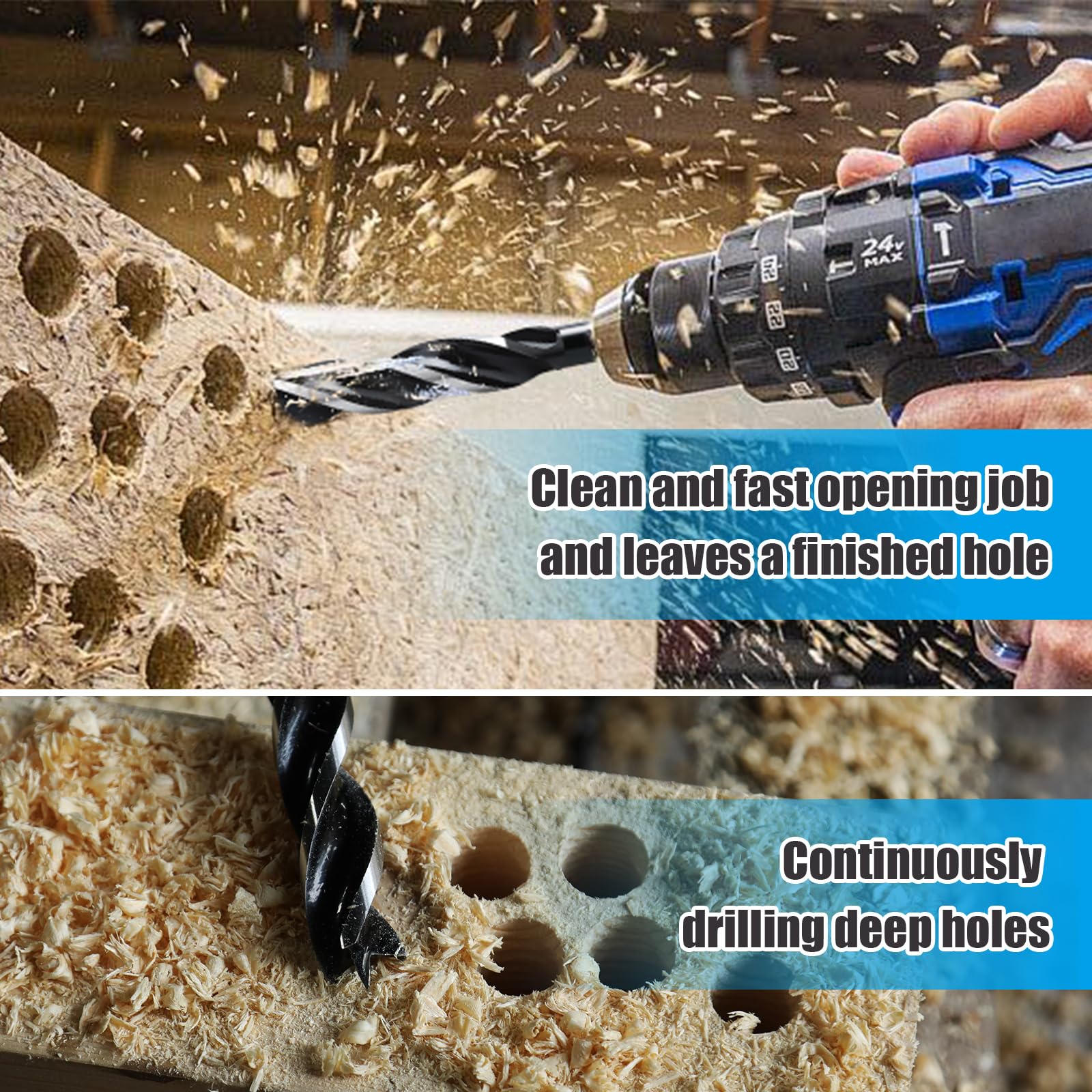 - Material:Constructed from top 1045 high Carbon Steel,Equipped with the exceptional triple cutting spurs and centering tip design,engineered for accurate centering and swift drilling.