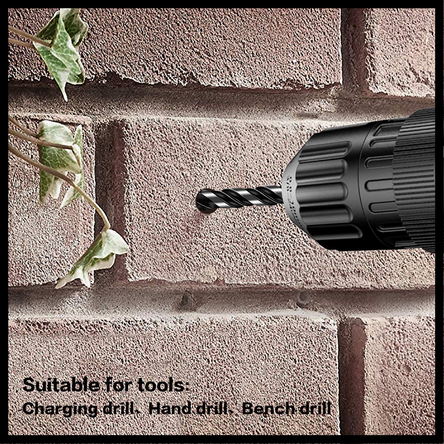 10-Piece Masonry Drill Bit Set for Concrete, Tile, Glass & Brick, 1/8–1/2" with Triangle Handle, Tungsten Steel Tips (Black)