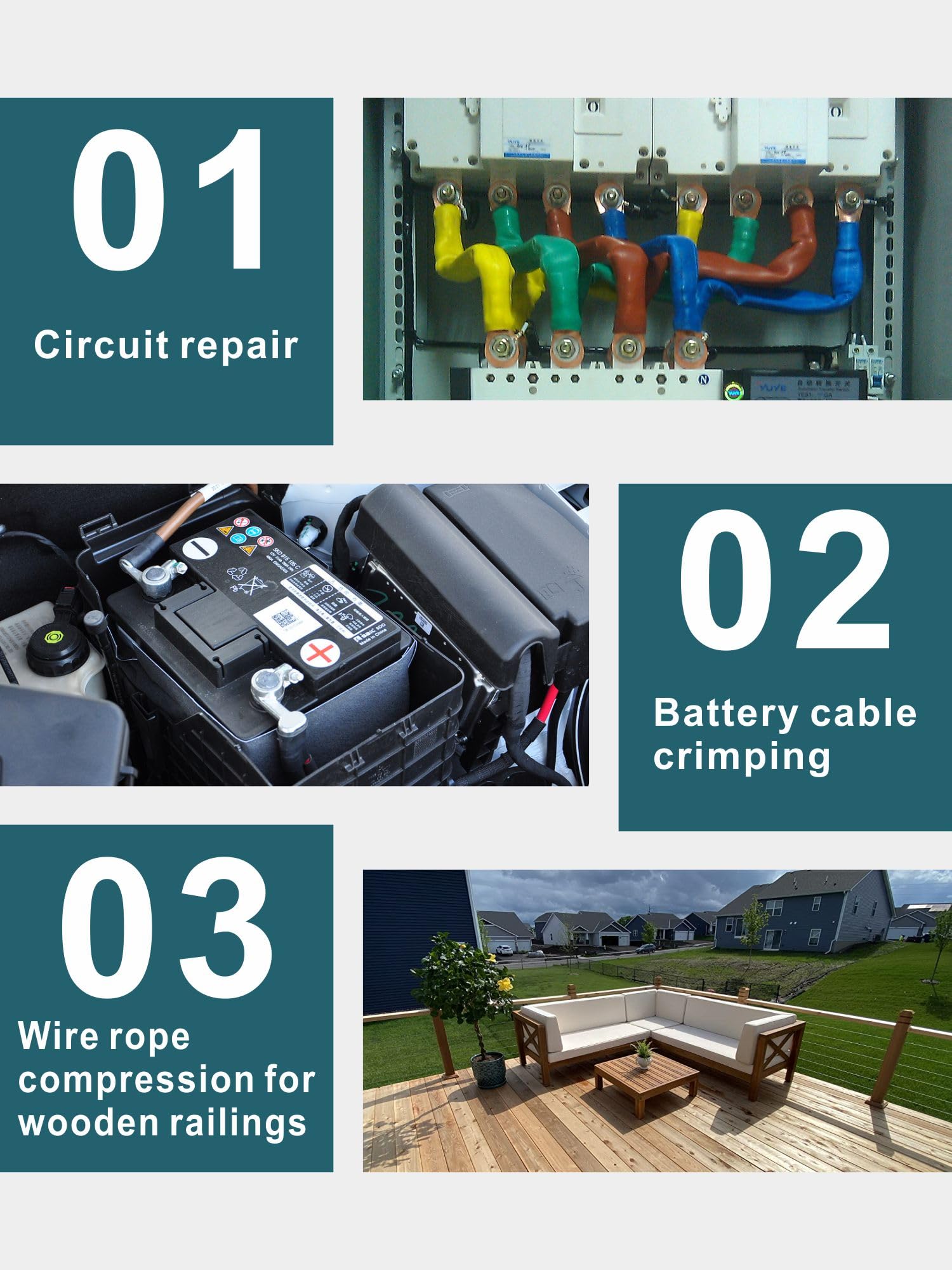 - 【Wide Application】 The crimper tool is great for battery and welding cables , power Wires , and electrical cables ,even can be rotated 180° freely for narrow space working