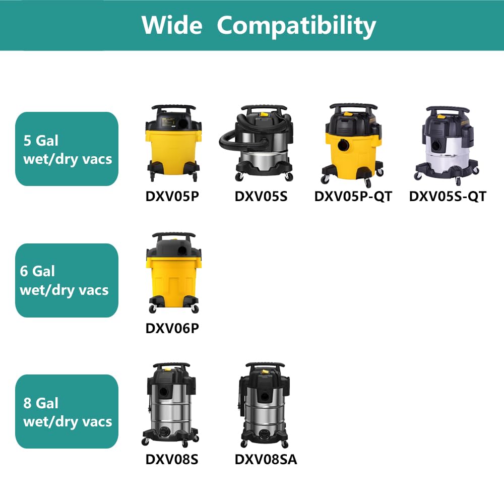 - 【Package Include】 (12) disposable filter bags, Part# For DEWALT DXVA19-4104 . Compatible with DEWALT 5-6-8 gallons shop vac models : DXV05P,DXV05S, DXV05P-QT, DXV05S-QT;DXV06PL, DXV06PL-QT;DXV08S, DXV08SL, DXV08SA, DXV08S-QT