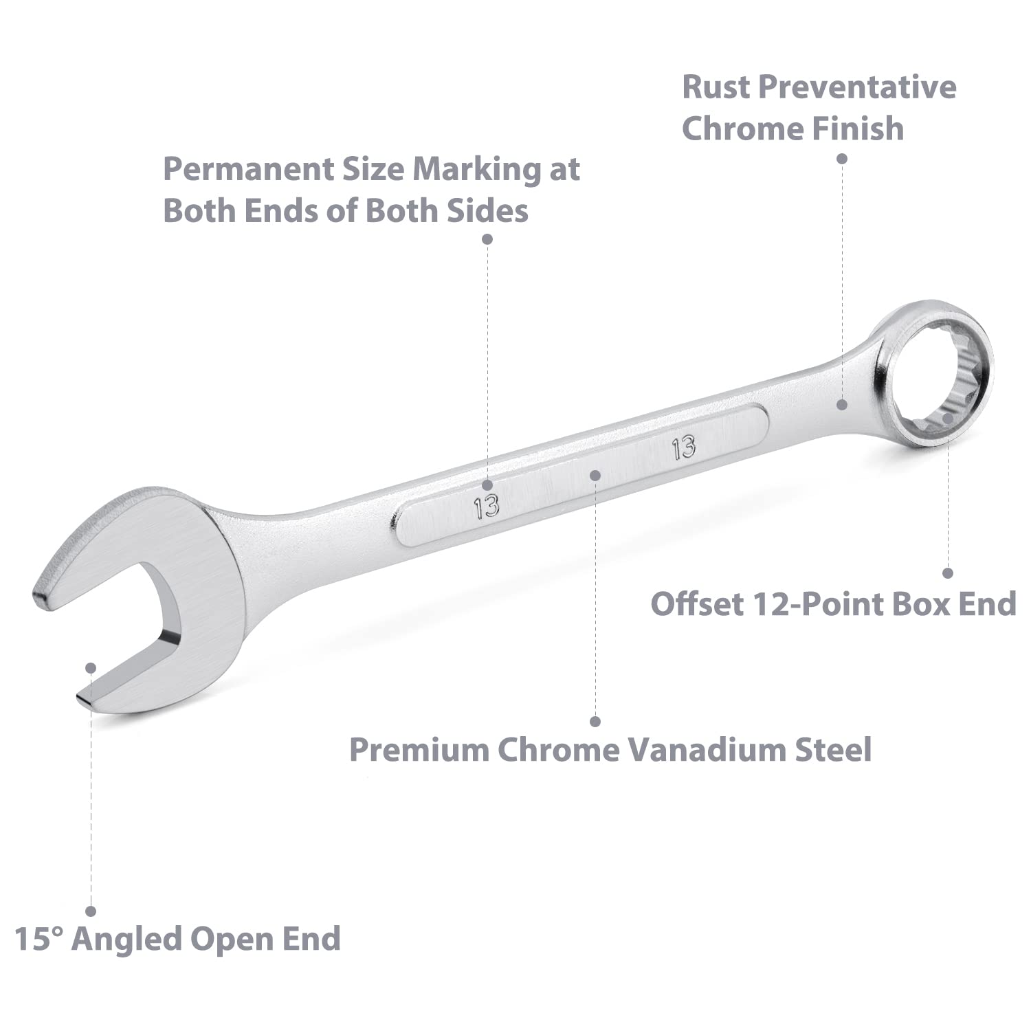 19-Piece Metric Combination Wrench Set 6–24mm, No Skipped Sizes, Roll-Up Pouch, for Garage, Auto Repair & Home Use