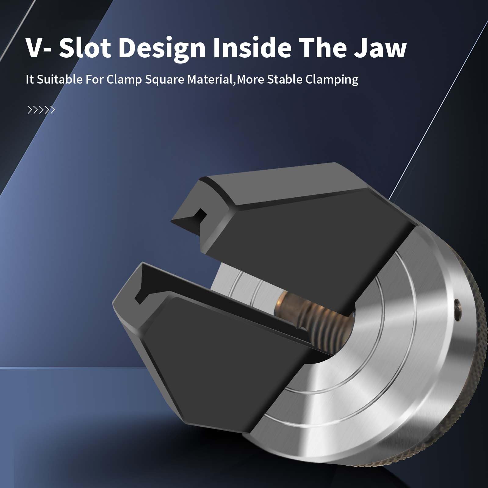 - Precision Design: This chuck has a special V- slot design inside the jaw, which is more suitable for clamp square material. The jaws are attached to the chuck body through an I-shaped structure which has high precision and firmness