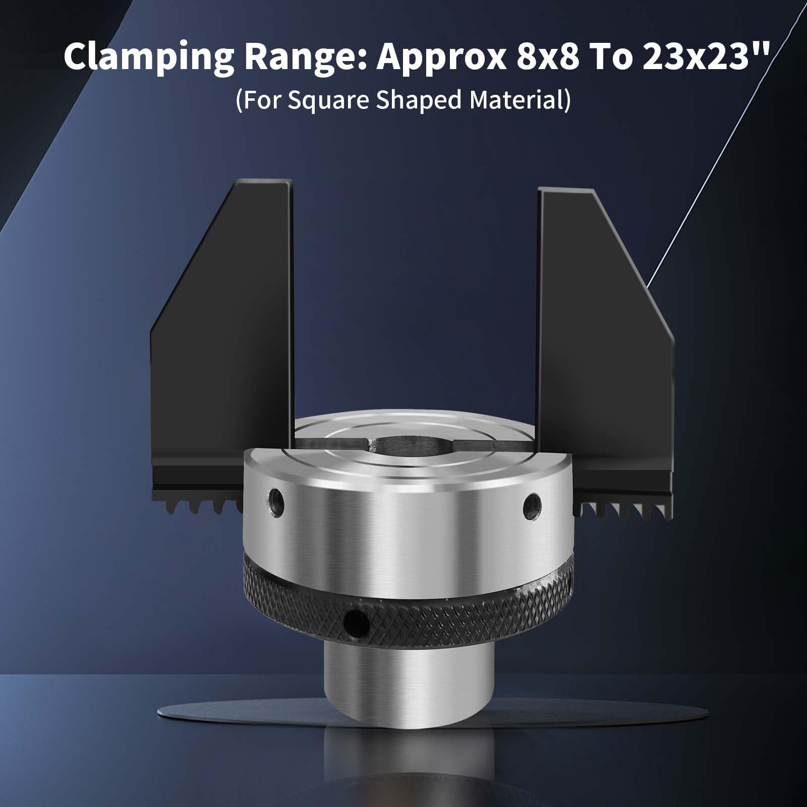 - Applicable Size: The clamping range of the lathe chuck is approx 8×8 to 23×23mm for square shaped material. Weights 1.43 pounds, and 2.5" diameter