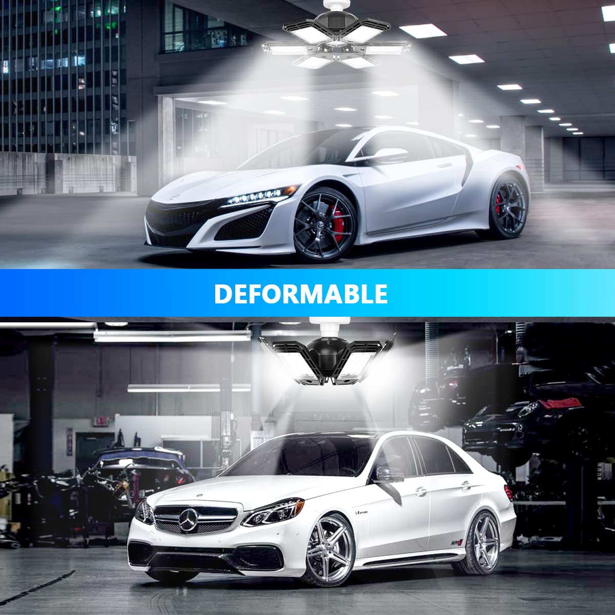 - 【50000 Hrs Lifespan & Energy Saving】Luyata deformable LED garage lights are made of high-quality ABS+PC material and hollow-out design, ensuring strong heat dissipation and stability