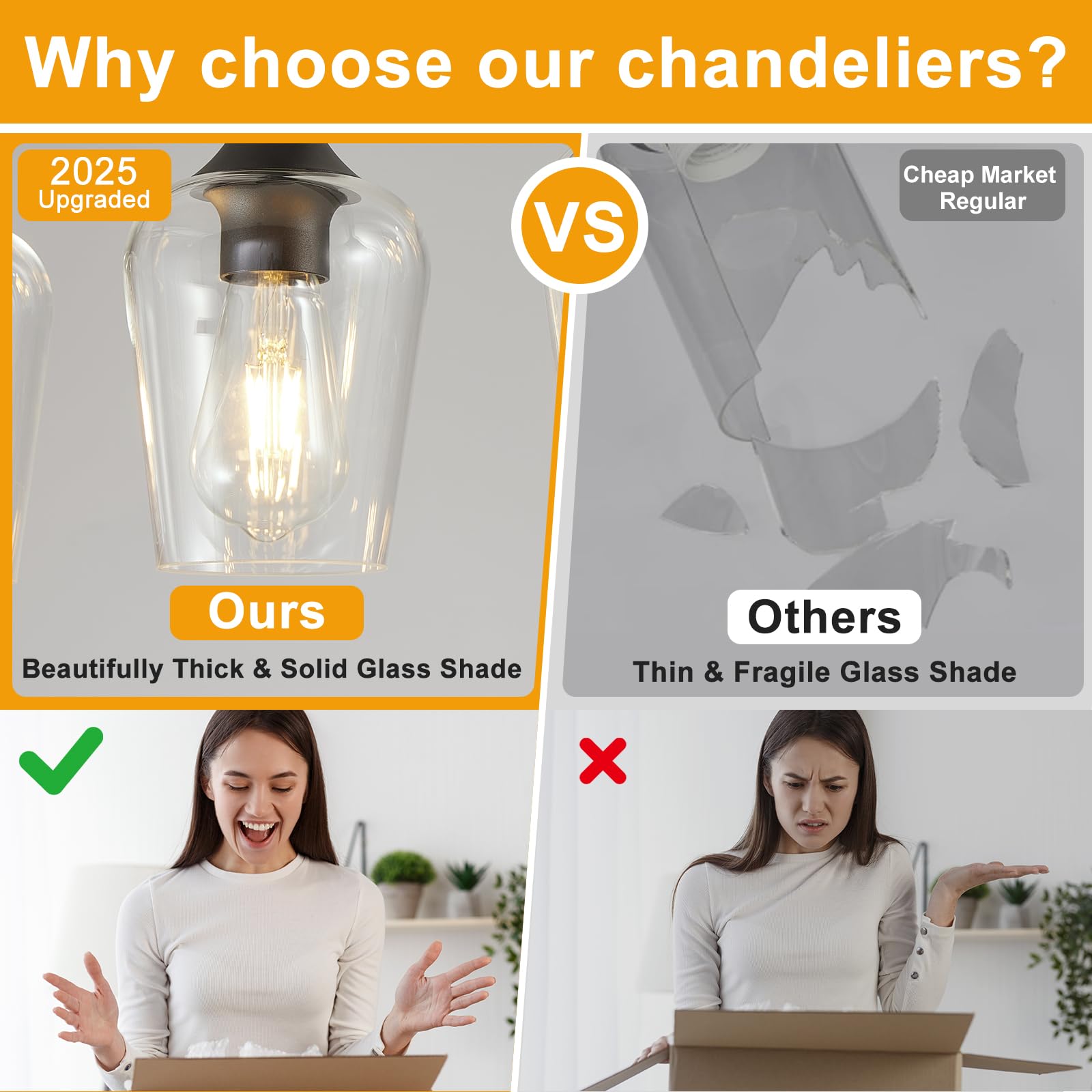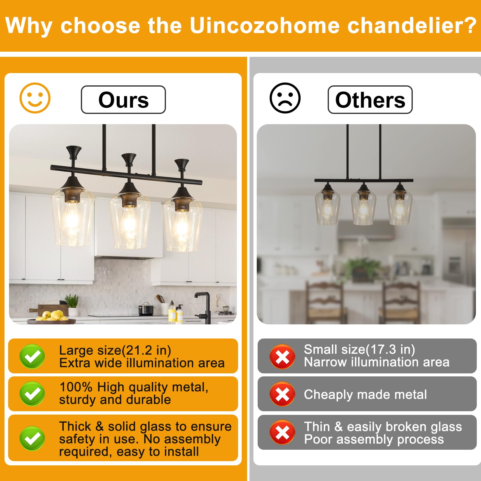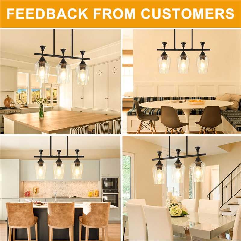 21.2'' Farmhouse Linear Chandelier, 3-Light Dining Room & Kitchen Island Pendant, Matte Black Ceiling Light with Clear Glass Shades