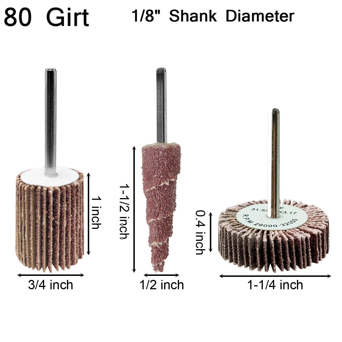 Details: 30 PCS Abrasive Flap Wheel Sander - 80 Grit 1/8" Shank Cone Sanding Wheels for Rotary Tools
