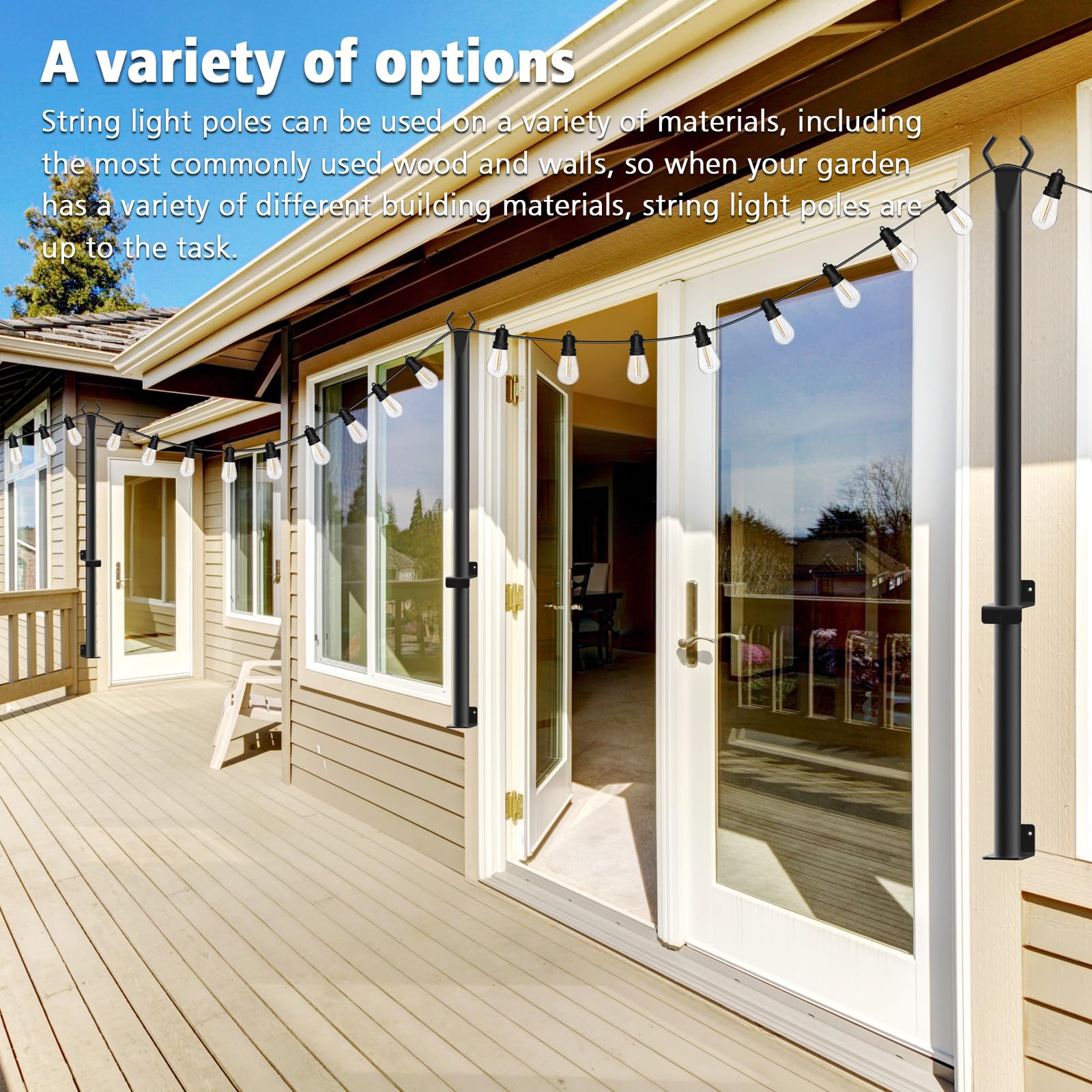 - Rich Scene: Outdoor string light poles are versatile, enhancing gardens, walls, fences, and various decorations. They can be adorned with banners, flags, lanterns, making them perfect for parties, holidays, birthdays, weddings, creating ambiance, and adding charm to Valentine's Day settings.
