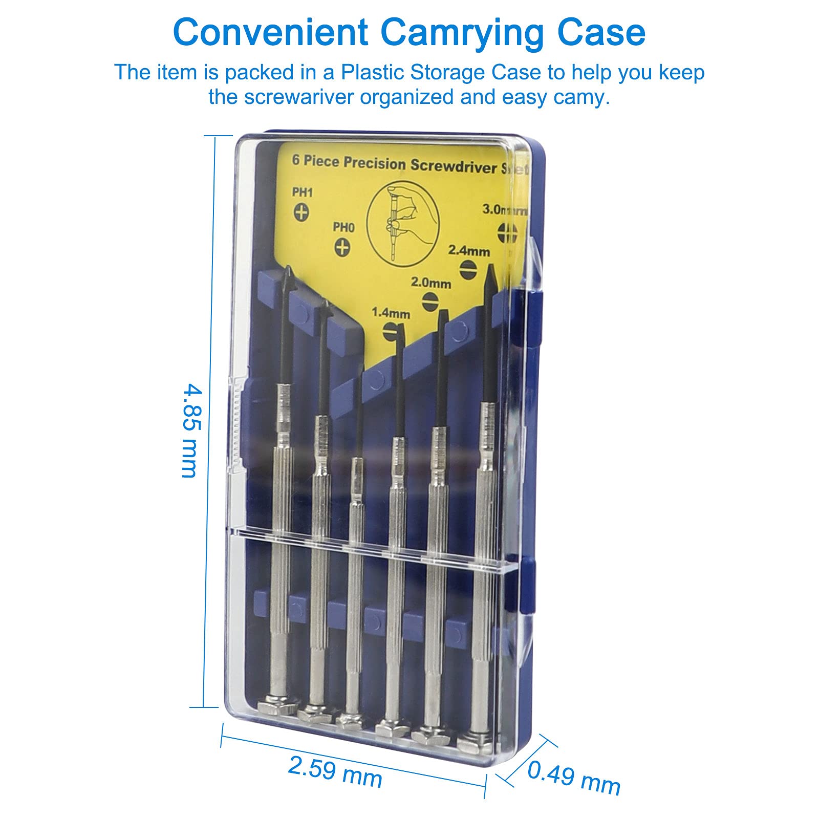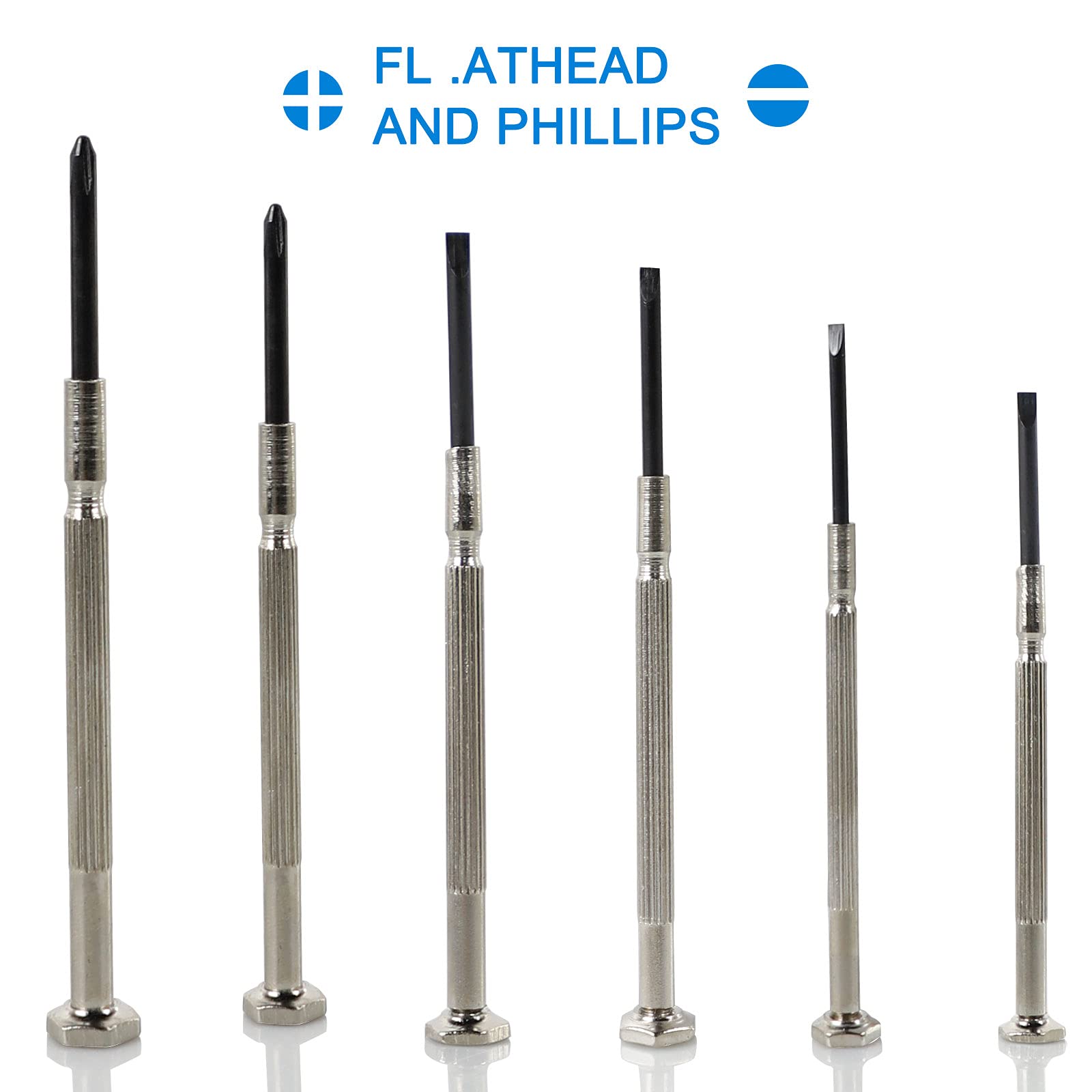 - 1【6 Different Sizes】Precision screwdriver set, The set includes 2 cross sizes (#0,#1); 4 flat head sizes(1.4 mm, 2.0 mm, 2.4 mm, 3.0 mm); mini screwdriver is your daily electronic repair, watch repair, jewelry repair Perfect choice for any other small screws.