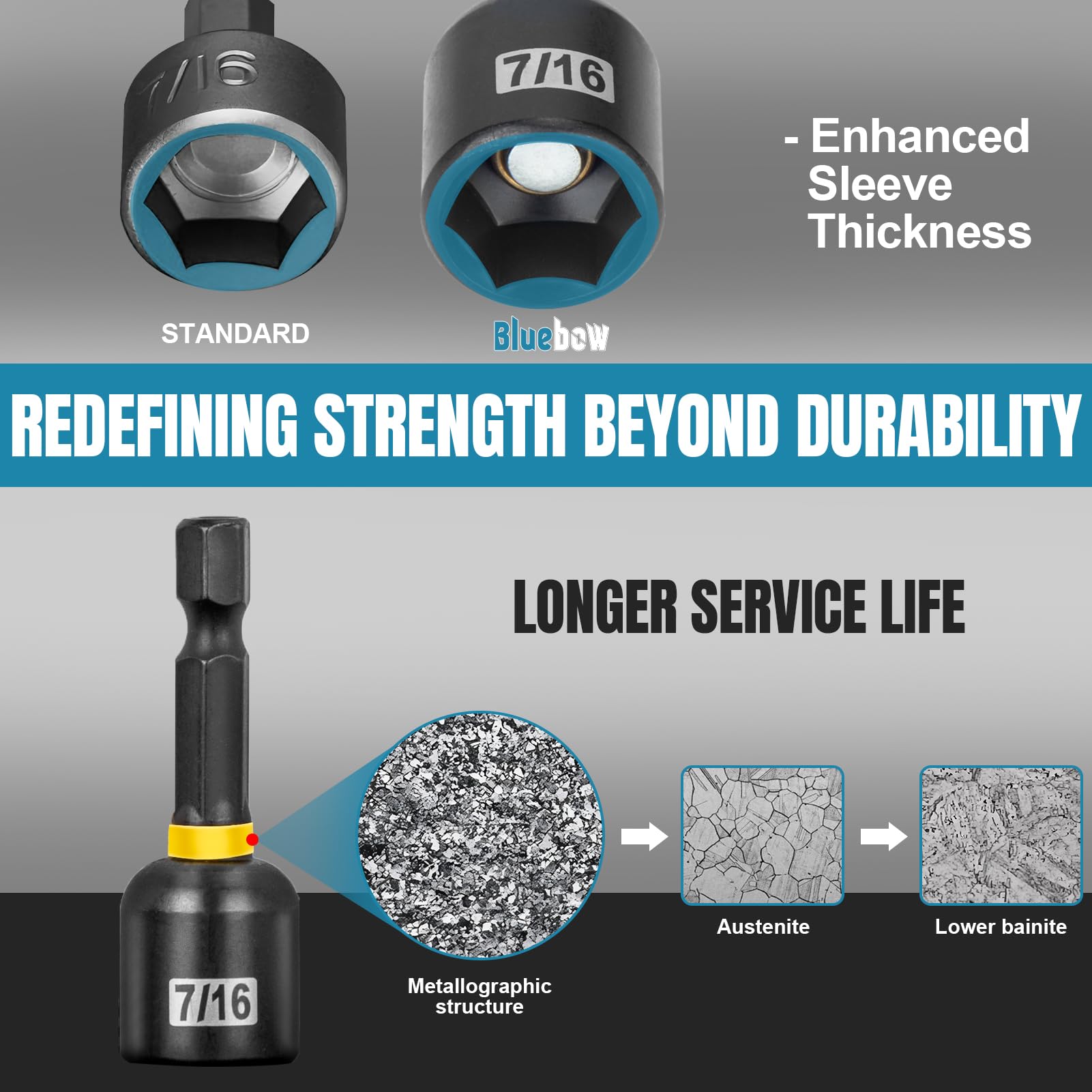 - 【Premium-Grade Durability】Constructed from Cr-V and S2 steel, high-temperature quenching, and advanced processing, this set boasts exceptional impact resistance and hardness. This nut driver bit set features deep nut drivers with thicker walls and a manganese phosphate coating for exceptional durability