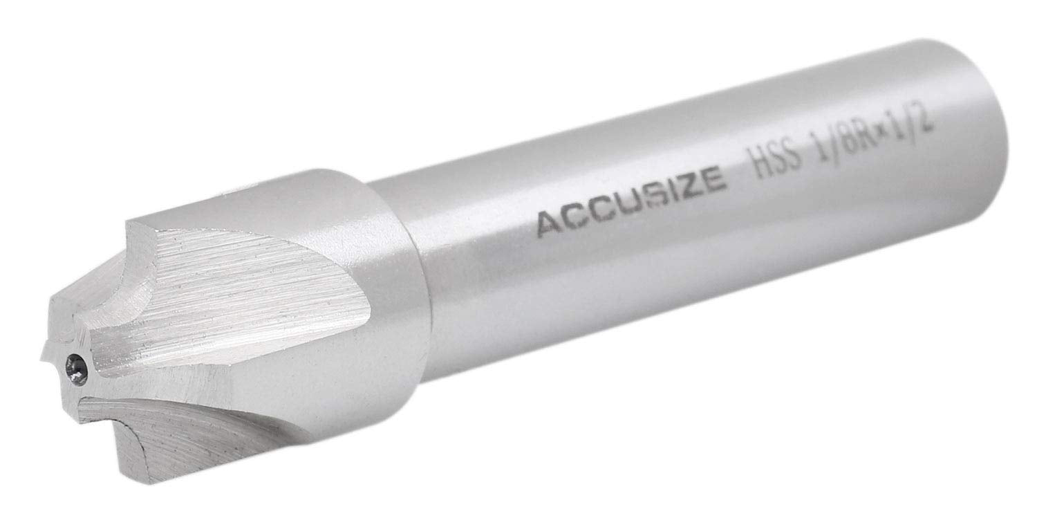 - Rad.: 1/8", Shank dia.: 1/2", Largest dia.: 5/8", Overall length: 3"