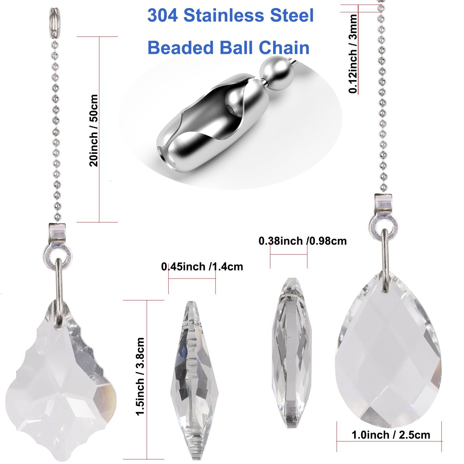 - [🌺 What You Get] 2pcs 20 inch metal ball chains with 2 crystal pendants and 2 beaded chain connectors. All came in a plastic box for safe keeping.