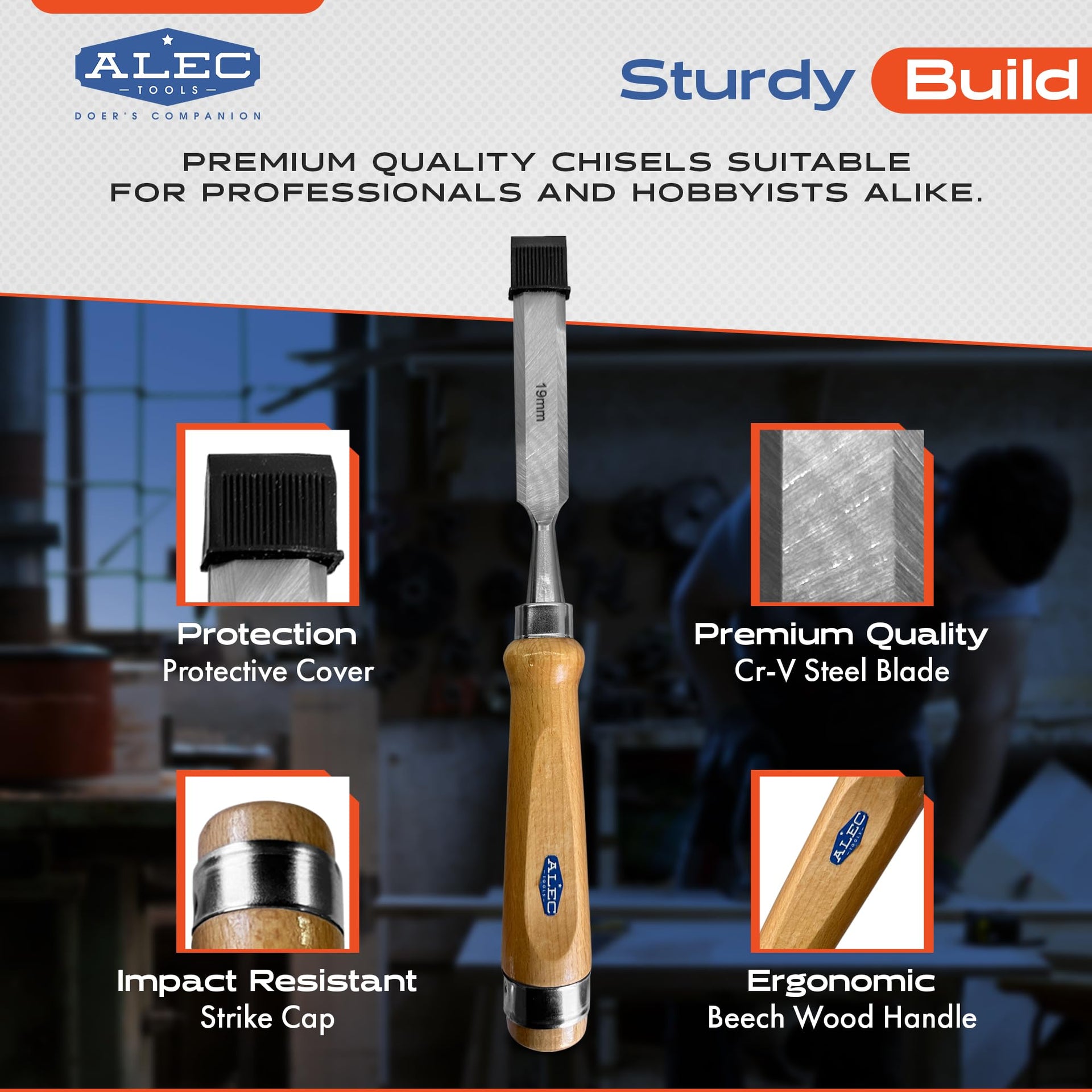 - Premium Chromium-Vanadium Steel Blades: Each wood chisel features a pre-sharpened blade made from durable Cr-V steel, known for its hardness and edge retention. Ready to use right out of the box, these wood working chisels deliver precise, smooth, and clean cuts every time, being ideal for long-term performance without frequent resharpening.