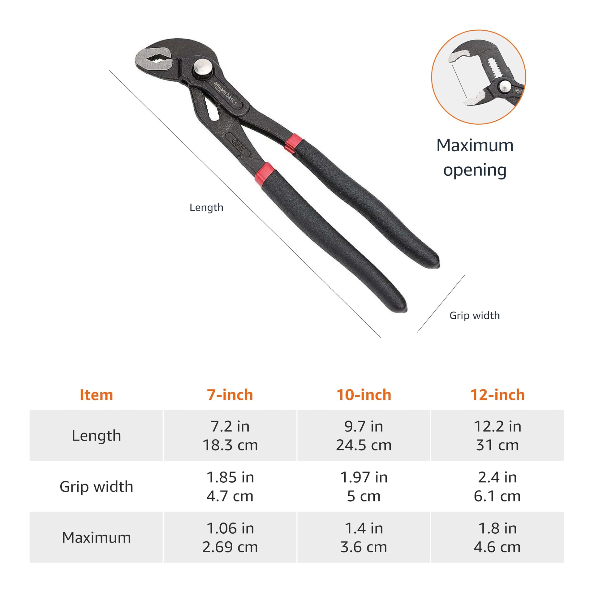 Amazon Basics 3-Piece Quick Release Groove Joint Pliers Set - Drop Forged Chrome Vanadium Steel, Includes 7-inch,10-inch, and 12-inch