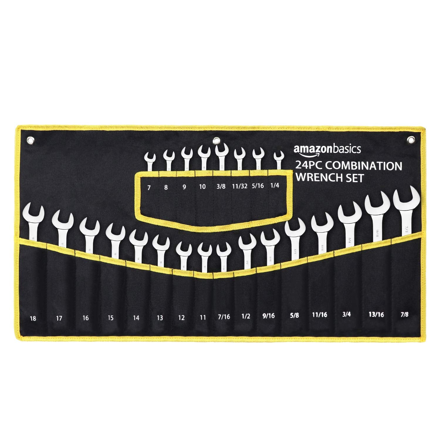 Amazon Basics Combination Metric and SAE Wrench Sets, Set of 24