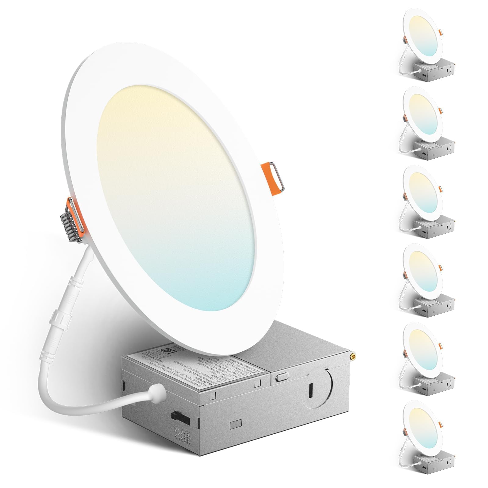 - 5CCT LED Recessed Lighting 6 Inch: 5 color temperature(2700K, 3000K, 3500K, 4000K, 5000K) is selectable to you, which successfully eliminates the hassle of returning or exchange products due to inappropriate color temperature. Just slide the switch on the side of the J-box and you will get the most-desired color that best fit in your room type.