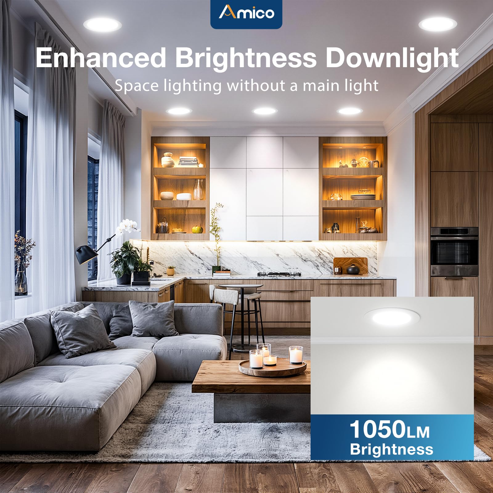 - Amico Benefits: Amico recessed downlights are damp-rated, suitable for installation in bedrooms, living rooms, kitchens, hallways, and even bathrooms. Our recessed lighting are certified by ETL of a high standard.