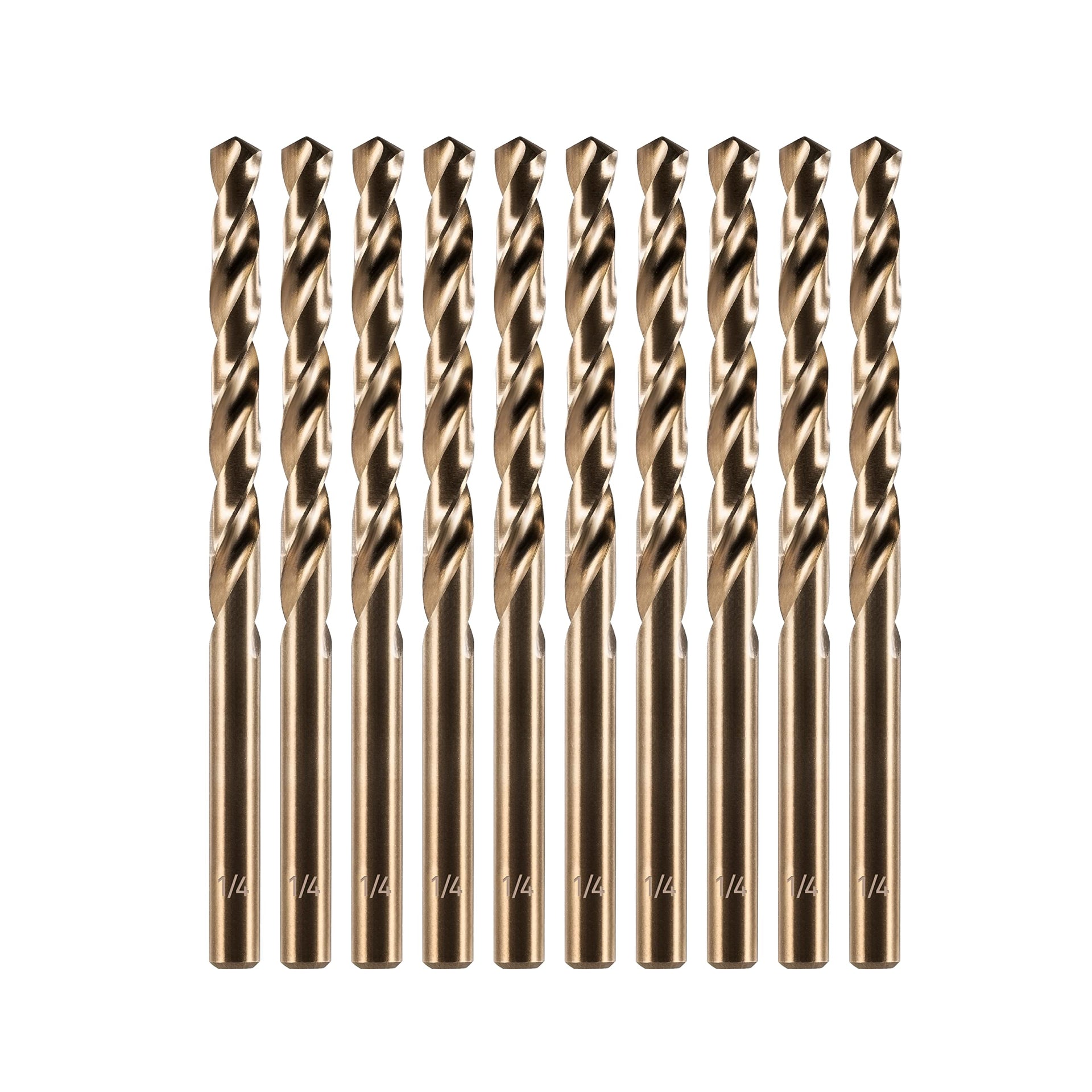- 【10Pcs 1/4" Cobalt Drill Bits】10Pcs - 1/4”(Dia 6.35mm) x 2-3/4”(Flute Length 69.85mm) Metal Drill Bits.This drill bit fits the majority of power drill currently on the market.