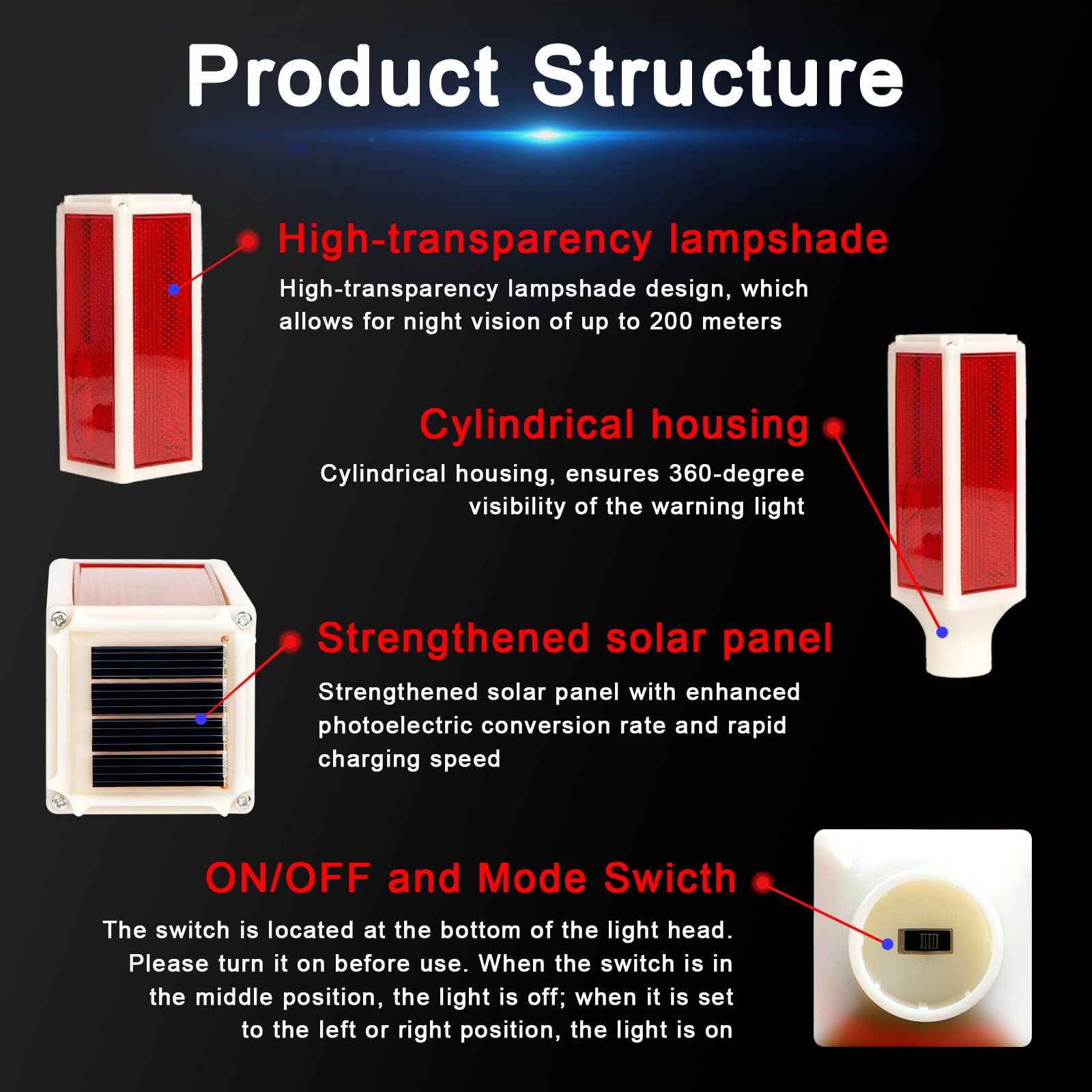 Aolyty Solar LED Driveway Marker Lights, 30" Waterproof Reflective Warning Flash Light, 2 Modes for Yard, Road, Parking Safety