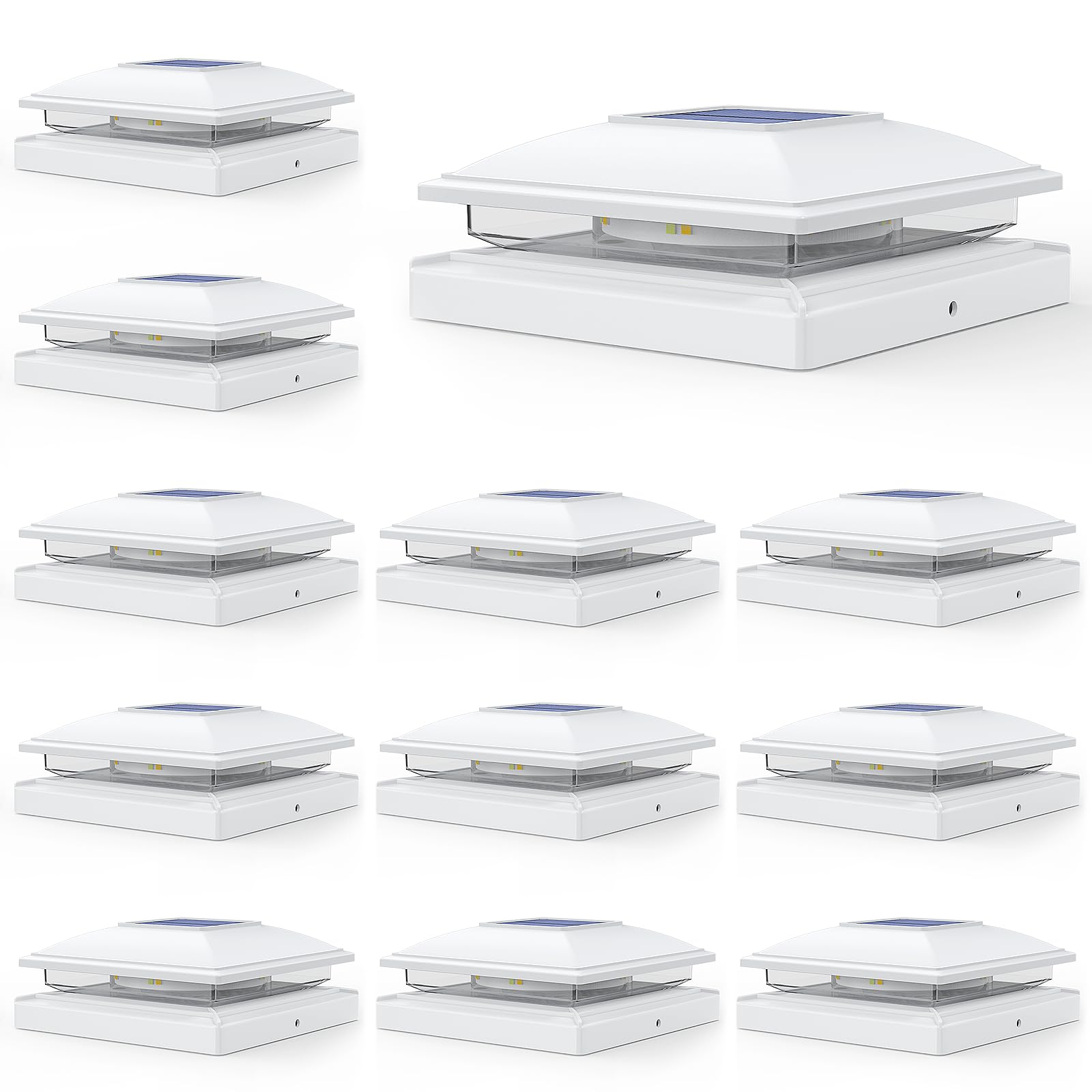 - [Warm White/Cool White]- APONUO deck post lights solar powered has two color modes, white light and yellow light. APONUO 6x6 post cap solar light with 16 led beads is capable of emitting 20 lumens of bright light at the start of dusk, making it perfect for outdoor lighting and garden decor,deck decor,fence decor,patio decor