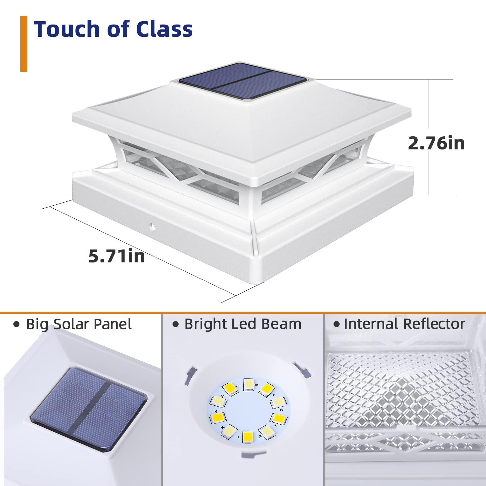- 【Fits Multiple Posts - Ultimate Compatibility】 Save time and guesswork. This solar post cap lights are uniquely designed with interchangeable bases to securely fit the most common post sizes: 4x4 & 6x6 Wooden posts (actual 3.5"x3.5", 5.5"x5.5") and 4x4 & 5x5 Vinyl/Plastic posts. Perfect for mixed-material yards