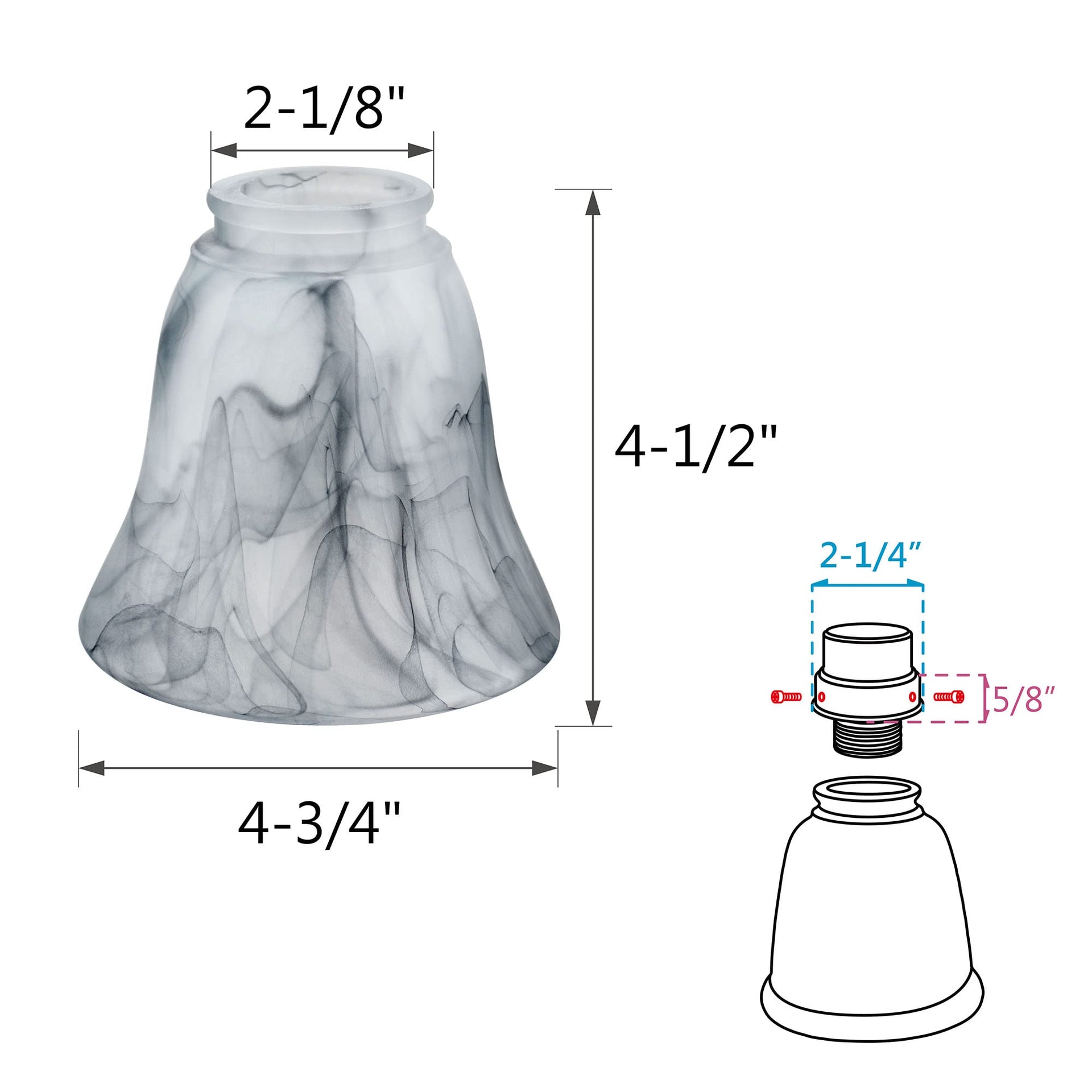 - Shade Shape: Bell | Shade Dimensions: 2-1/8" Fitter; 4-3/4" D x 4-1/2" H