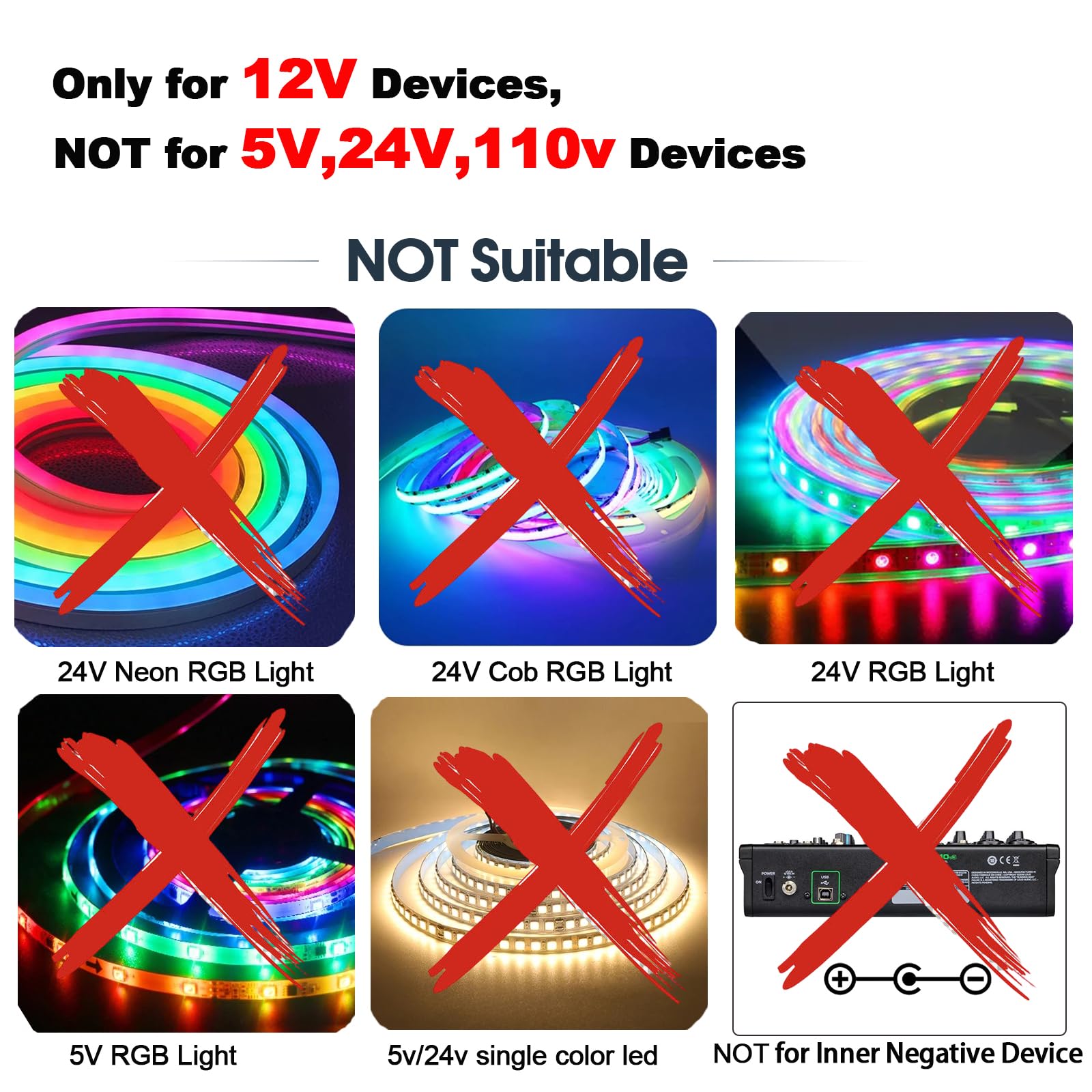 - Maximum power output of 12 watts/1 amp, ideal for small LED lighting products that draw up to 12 watts of power, such as LED strip lights, aquarium lights, under-cabinet lighting, TV backlighting, string lights, and small electrical appliances like DC CCTV cameras, IR cameras, and speakers