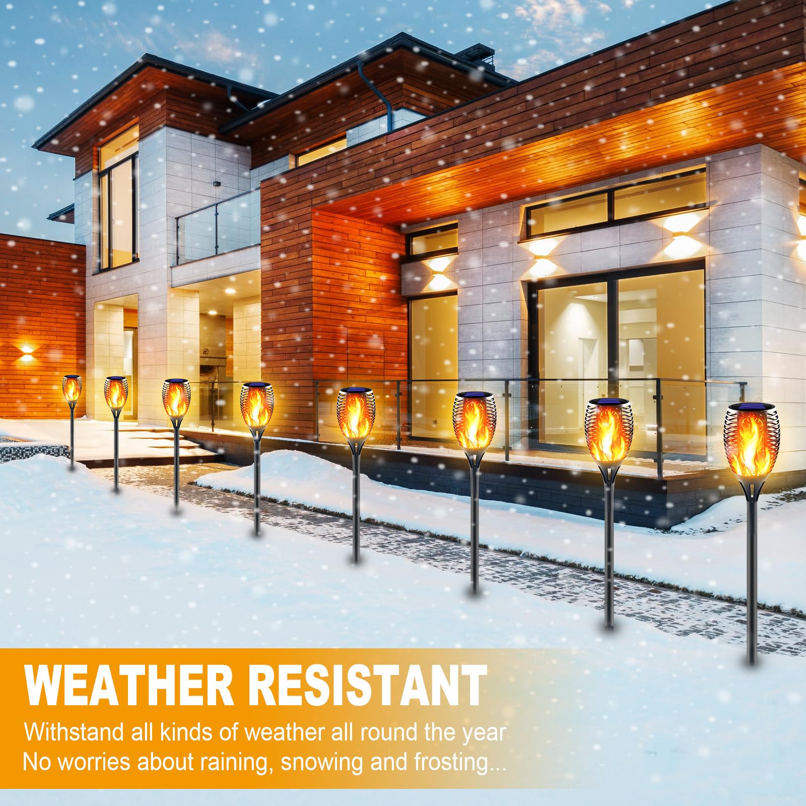 - Waterproof & Durable: Solar flame lights are made of high-strength ABS, IP65 waterproof and heat-resistant, equipped with sturdier stake and spike, no worries about rain or snow