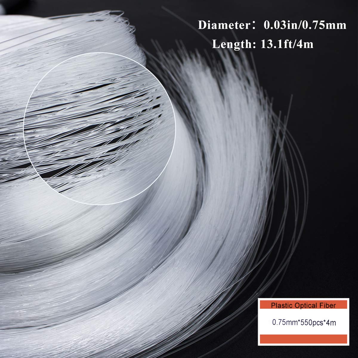 AZIMOM 550pcs 0.75mm Fiber Optic Cable 4m End Glow Strands, PMMA Plastic 0.03in, Star Ceiling Decoration for LED Light Engine