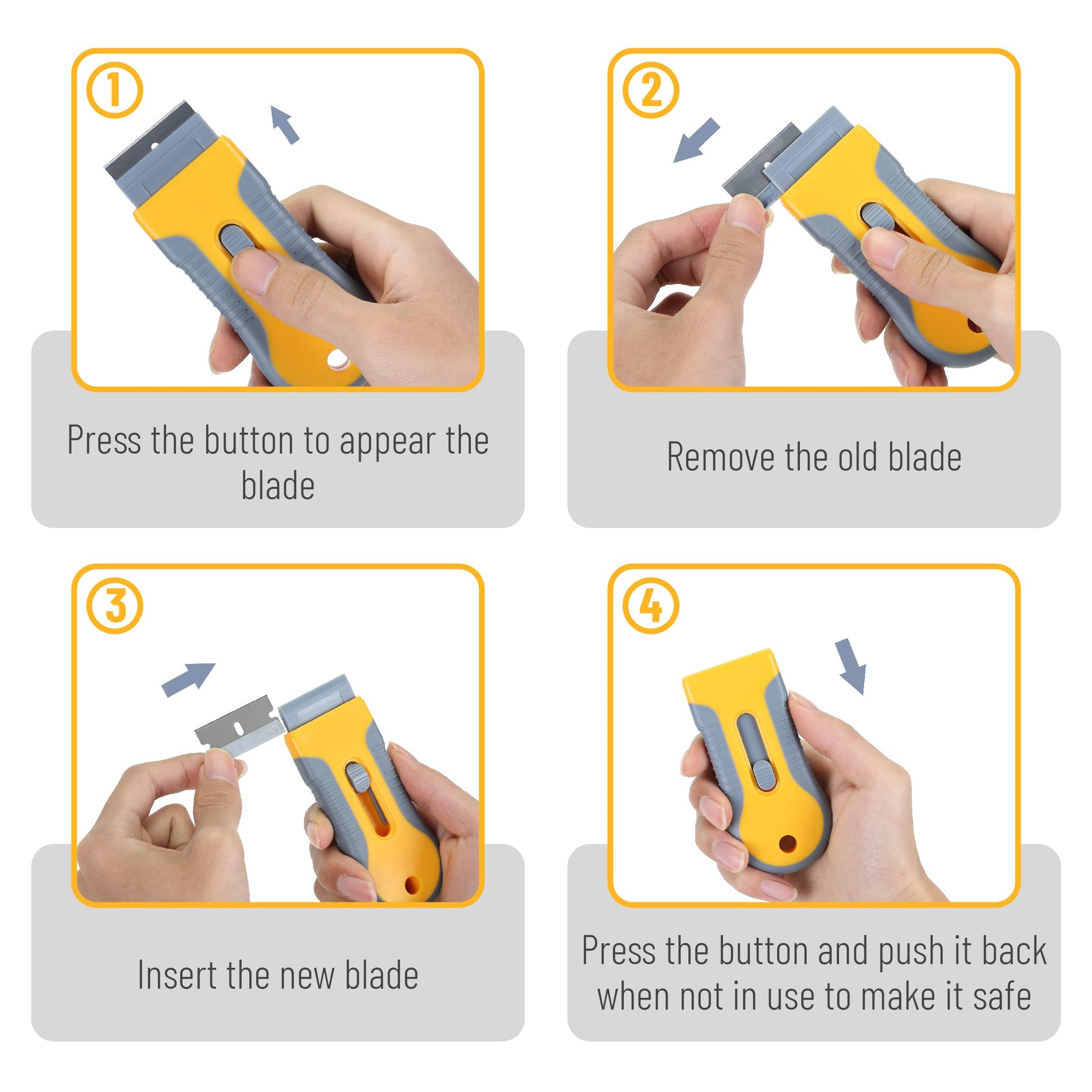 - Multipurpose Bates razor scraper is perfect for scraping labels, decals, stickers, caulk, paint from glass, stovetop, subfloor vinyl, tint film glue residue, etc.