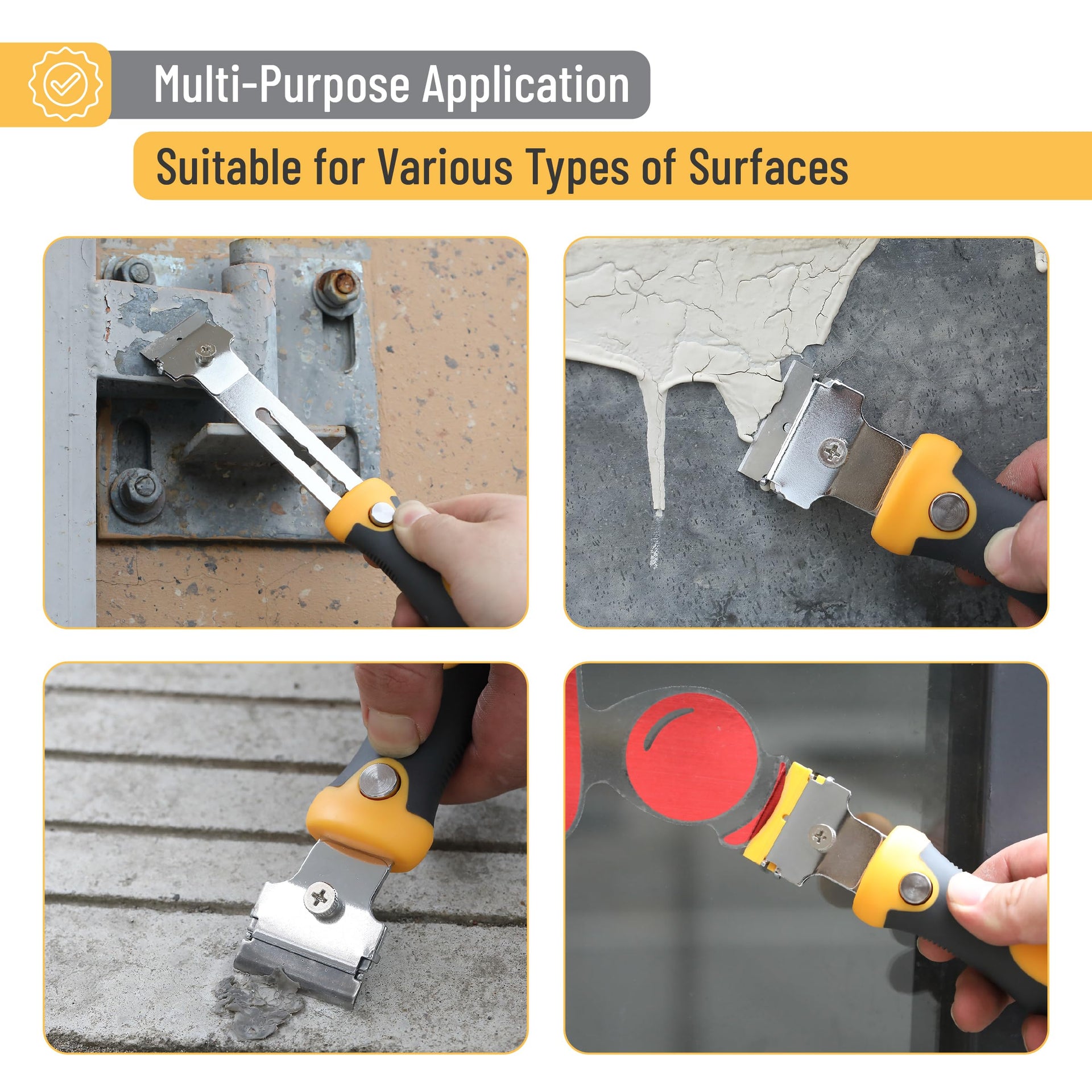 - The adjustable scraper allows you to extend the handle from 1.76" to 4.92" to easily reach tight or hard-to-access areas, making it perfect for a variety of tasks like paint removal, cleaning, or surface scraping.