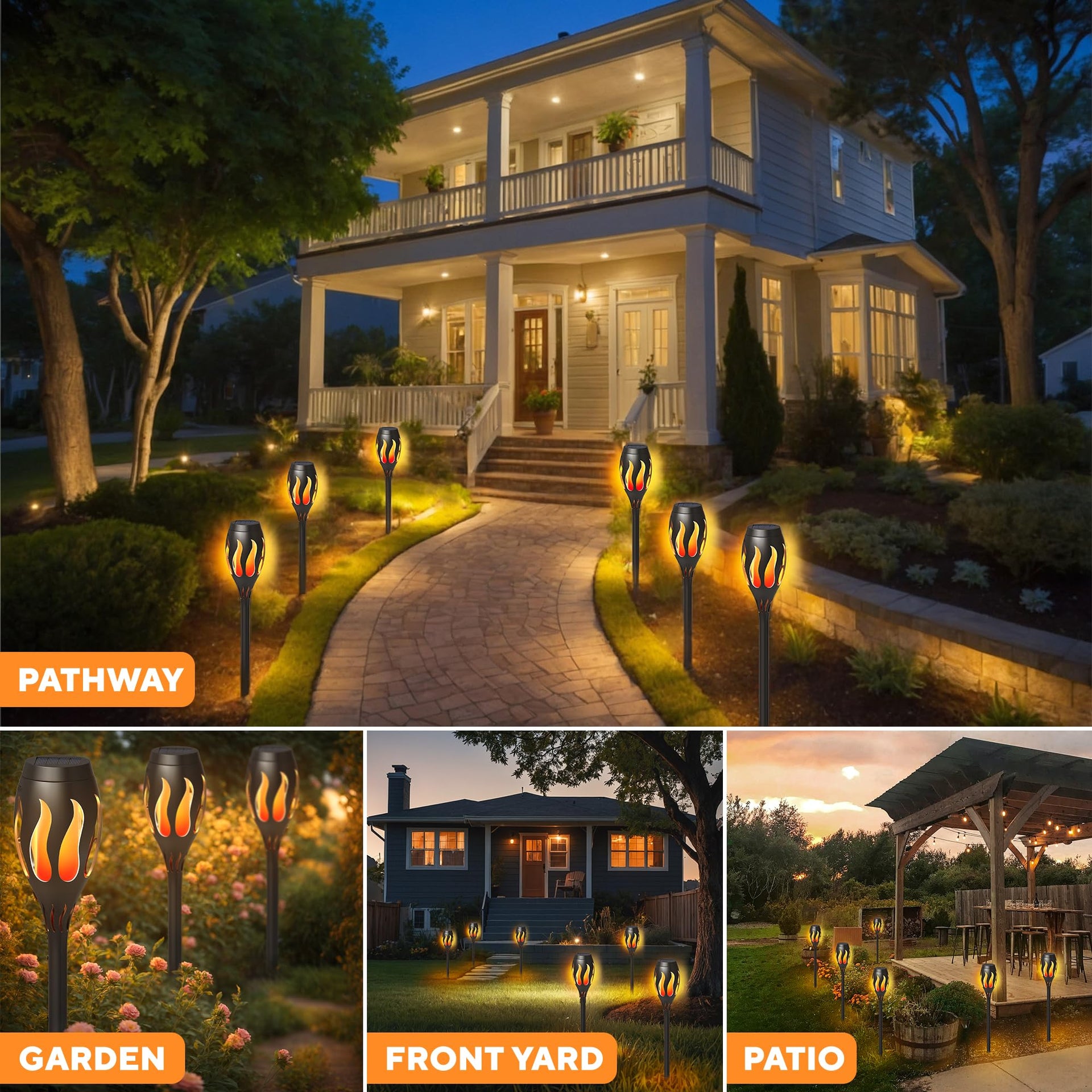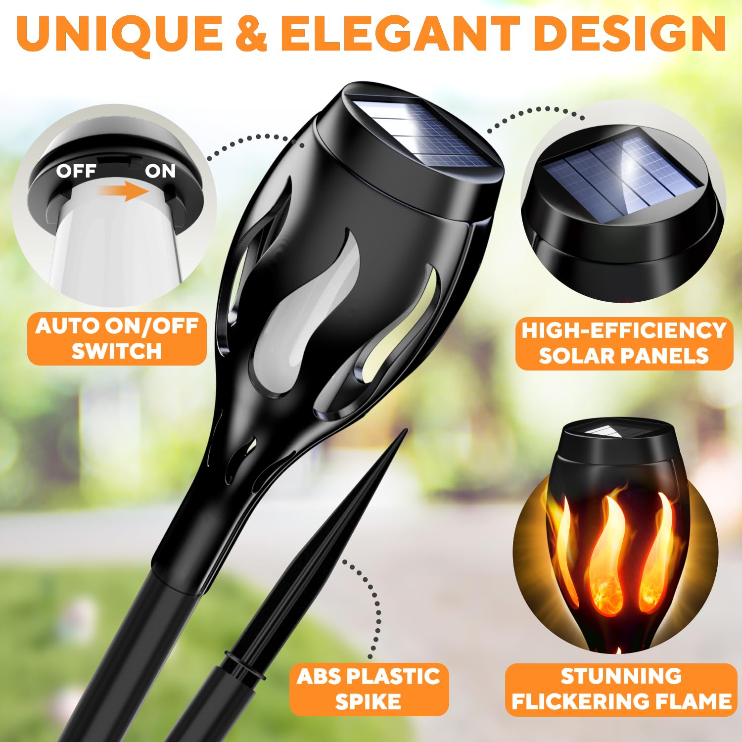 6-Pack Solar Tiki Torches for Outdoors – Flickering Flame, Waterproof, Auto On/Off, Perfect for Yard, Patio, Garden & Pathway
