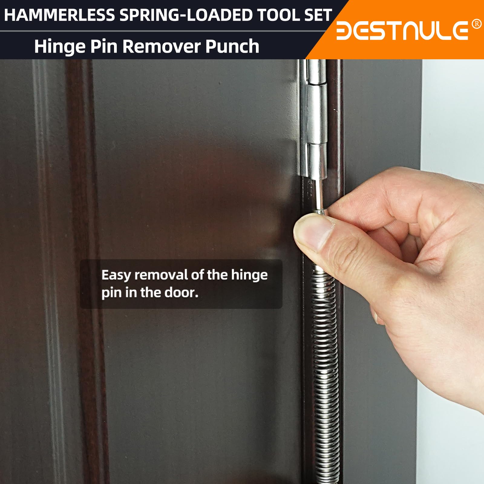 - (3)Hammerless Cold Chisel: The perfect driver tool to easily remove rivets, small screws, mandrels, etc. (4) Hinge Pin Remover Punch: flattens and removes hinge pins effortlessly and can be used without moving the object and without damaging the item by moving it. This nail setter uses a high-strength spring-loaded system with great impact, so no separate tools are needed, and because of the extremely small size, it allows it to be used in tight spaces.