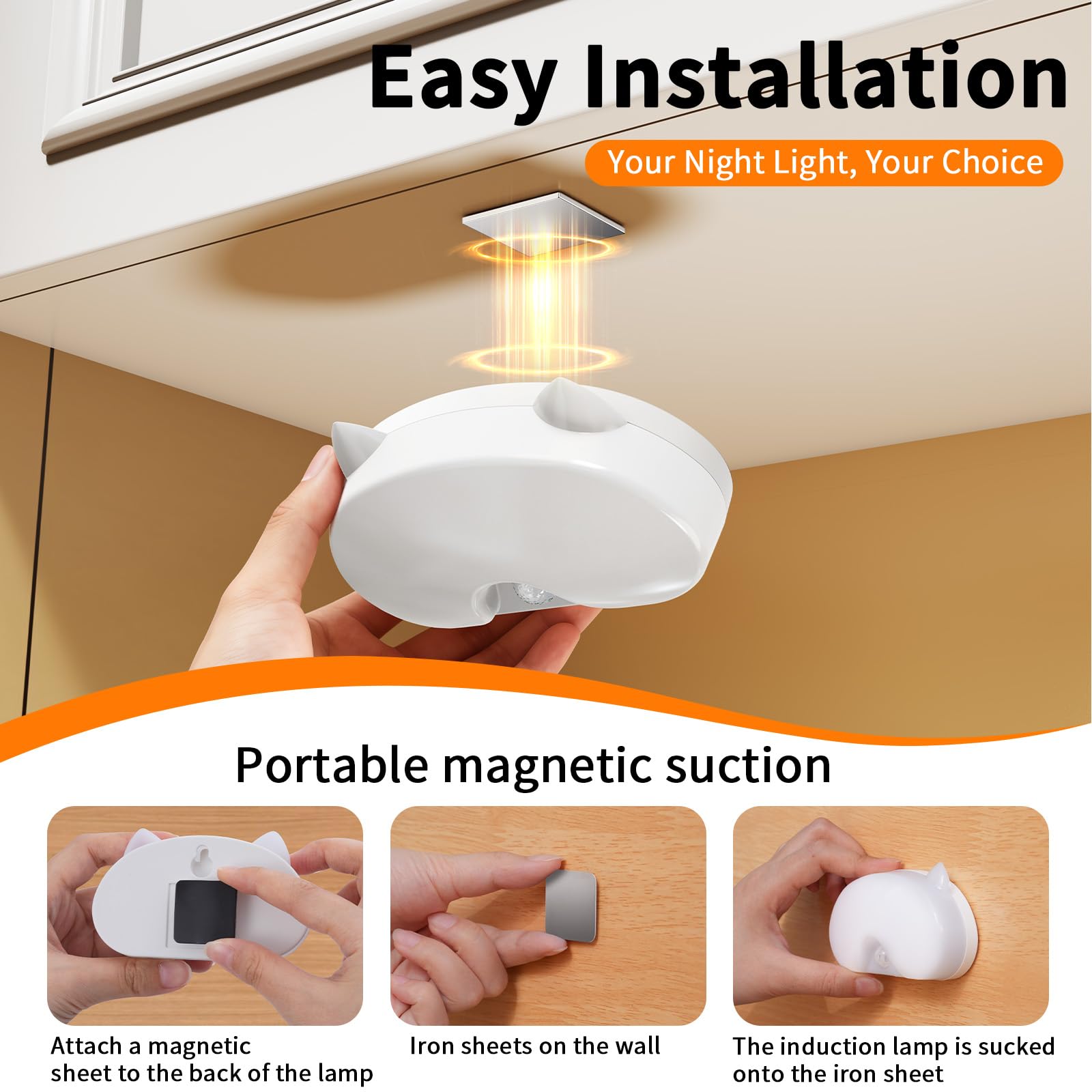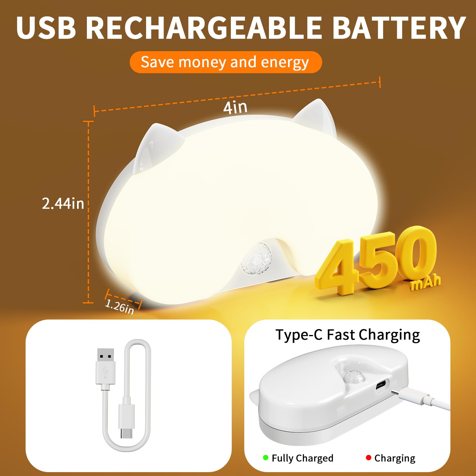 - Adorable Cat Design & Eye-Caring Warm Light - Soft 3000K LED night light provides gentle illumination for midnight feedings or bathroom trips. Motion sensor activates only in darkness (auto-off at dawn), saving energy.(Sensing range: 5 - 16 feet, Sensing angle: 120°, Sensing time: 20 seconds)