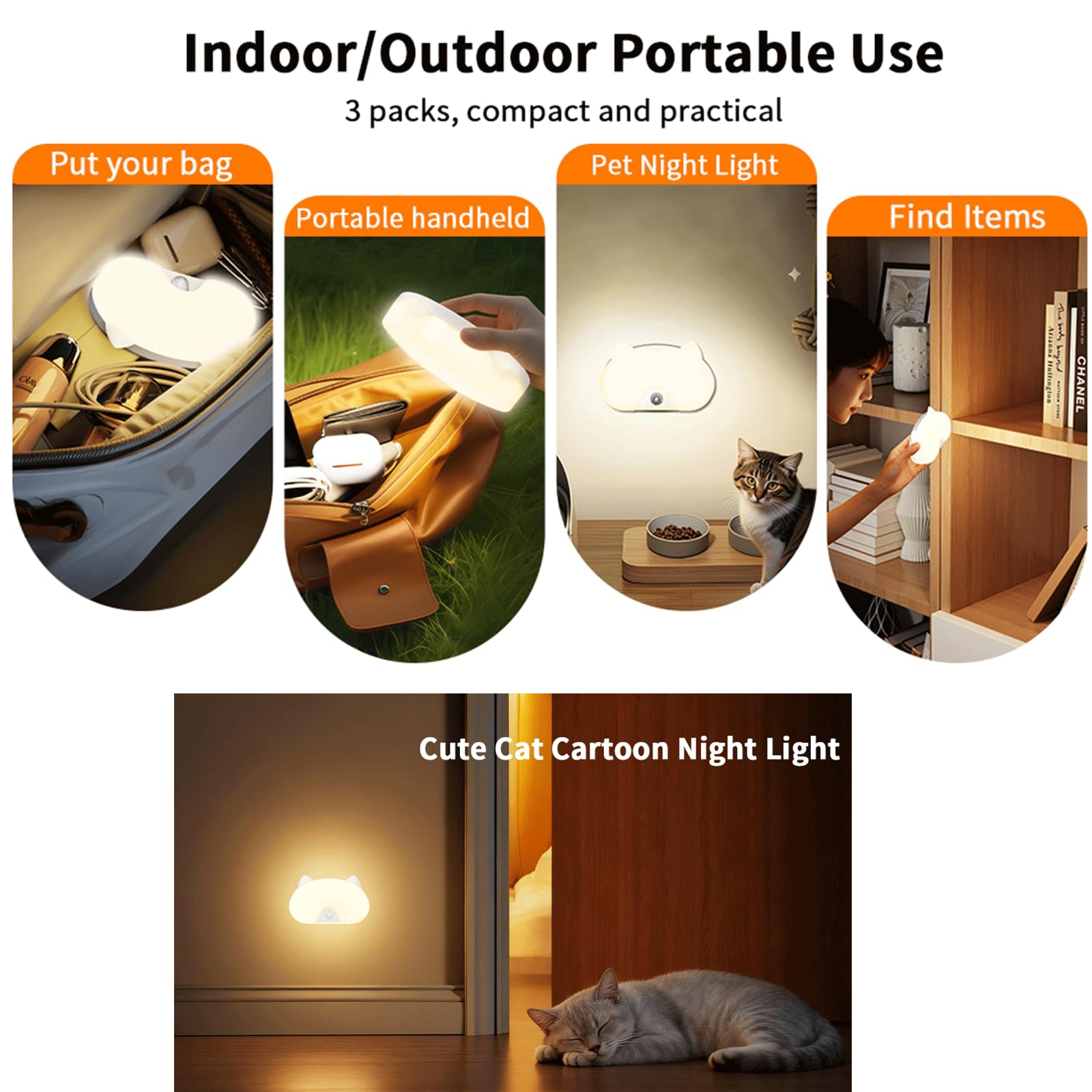 - Rechargeable Motion Sensor Lights Indoor with 400mAh Battery & Type-C Charging - Comes with 3 night lights, 3 cables, and 6 magnetic sheets for versatile placement in hallways, stairs, or closets. No wiring needed, perfect for renter friendly lighting