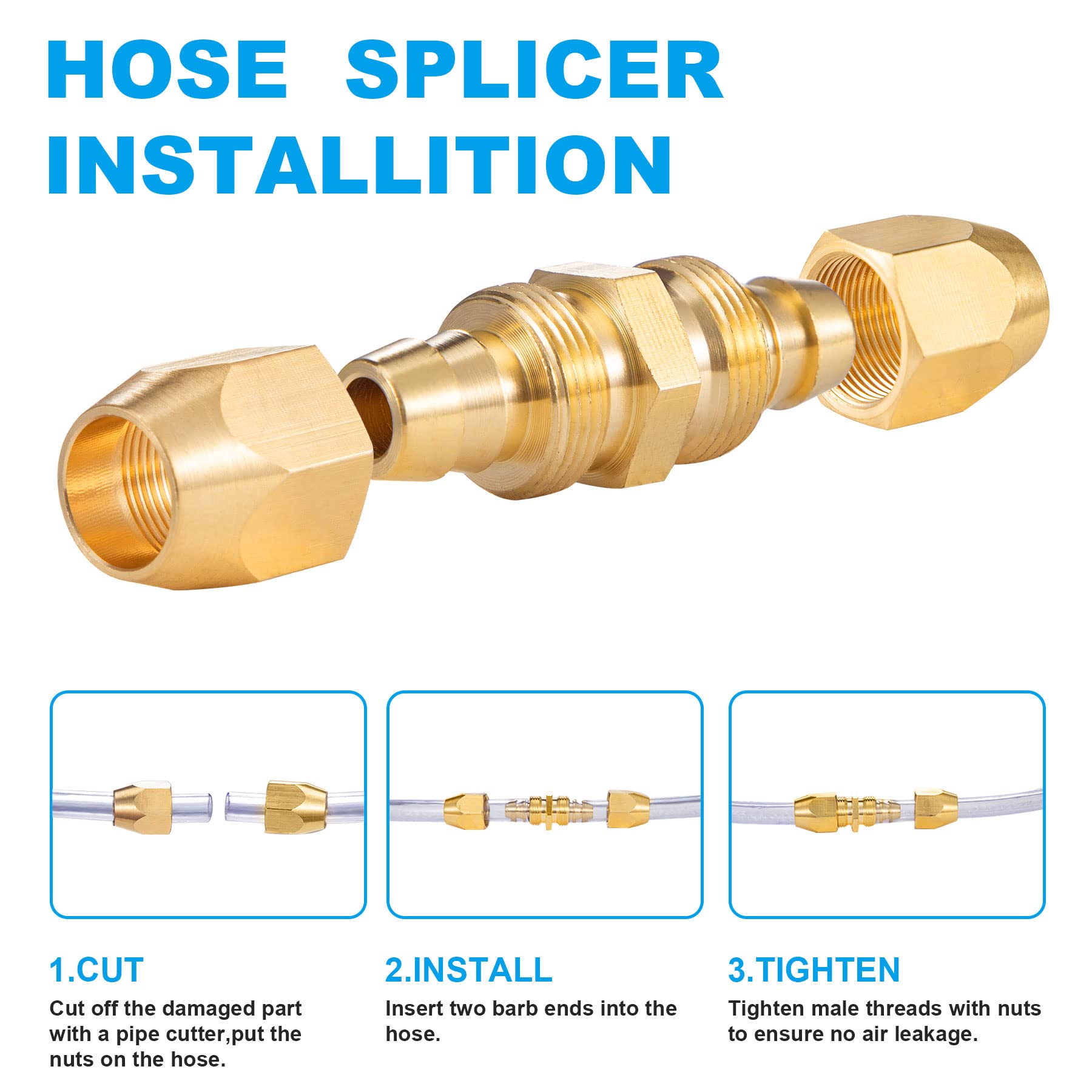 - 【Package includes】4 PCS 1/4" x 1/4" Hose Splicer Male Flare +8 nuts+ 2 PC Teflon Tape.