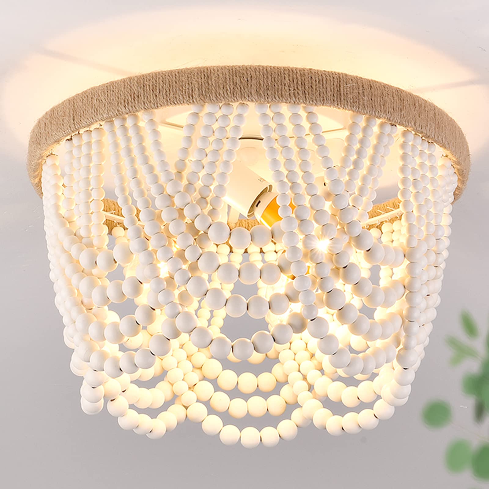 - 【Flush Mount Ceiling Light Fixture】Capslpad boho beaded light fixture is made of warm white wood bead and sturdy rope,is a perfect blend of traditional crafts and art.The boho chandelier will give off a beautiful flow and shadow on the ceiling-Delicate & Special.