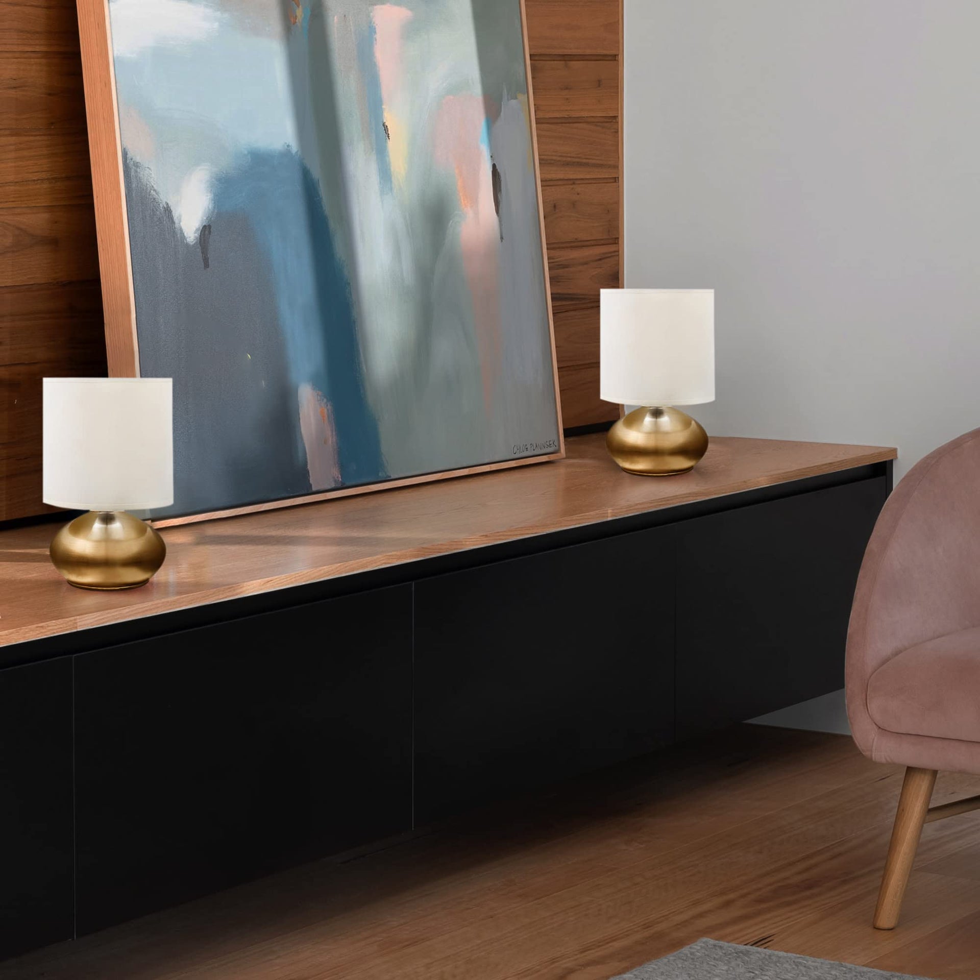 Catalina Lighting 18581-001 Transitional Matching Small Touch Lamp Set, LED Bulb NOT Included, 9.25" Antique Brass, Set of 2