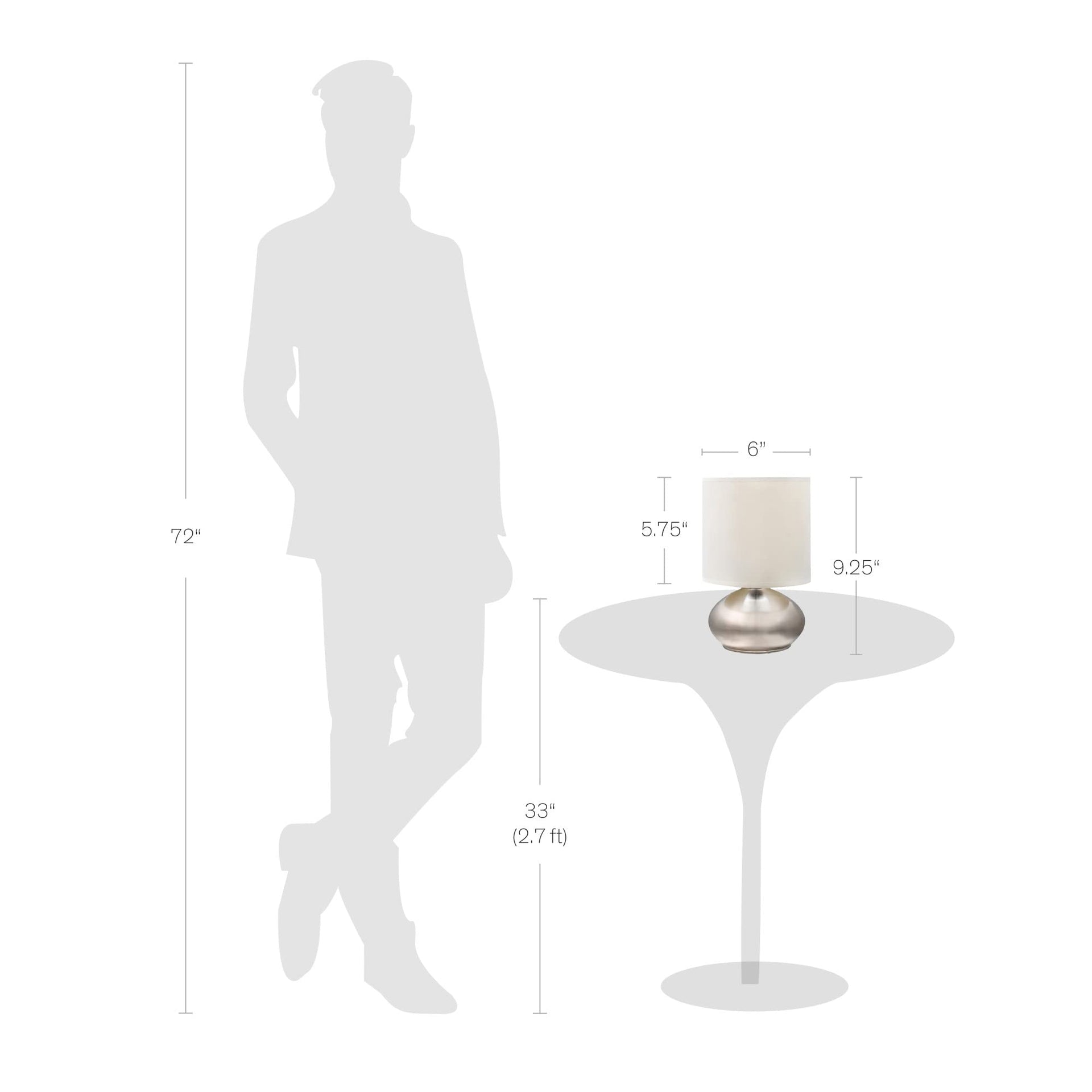 Details: Looking to add a little more light to your space? This set of two accent lamps is just what you're looking for — they're small pieces, but they make a big impact. These mini lamps are petite and smaller-sized (only 6" in diameter and 9.25" tall), making them perfect for placing on a side table, a console table in the hallway, or even on a mantle. Plus, they're touch-activated, making turning them on and off simple and streamlined. Whether you're looking for traditional mini lamps, modern mini lamps, transitional silver lamps, or glam brushed nickel mini lamps, this set of two will fit the bill.