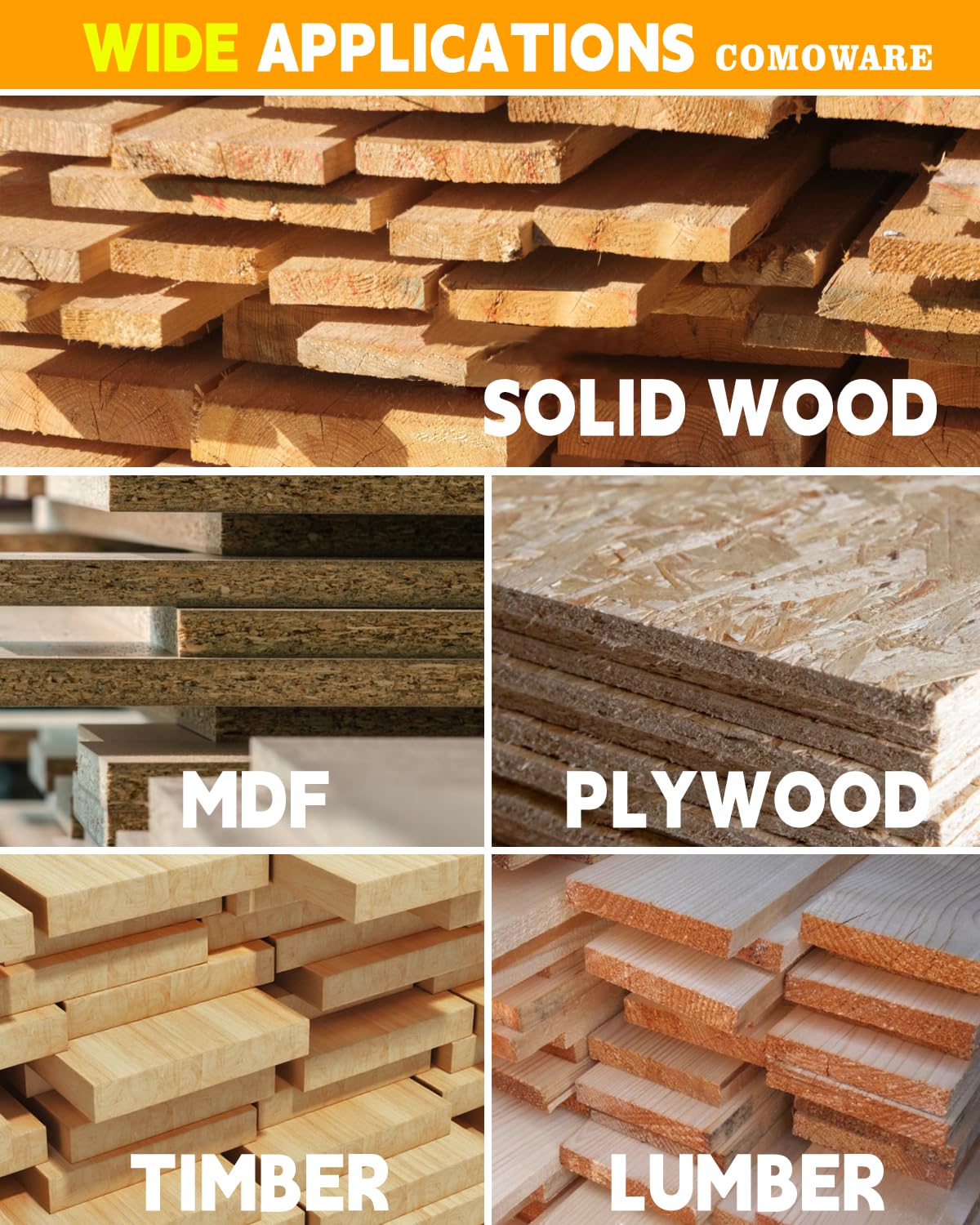 COMOWARE Spade Drill Bit Set- Paddle Flat Bits, Hole Cutter, Titanium Coating, Carbon Steel, Woodworking, 6-Pieces, 3/8"-1"