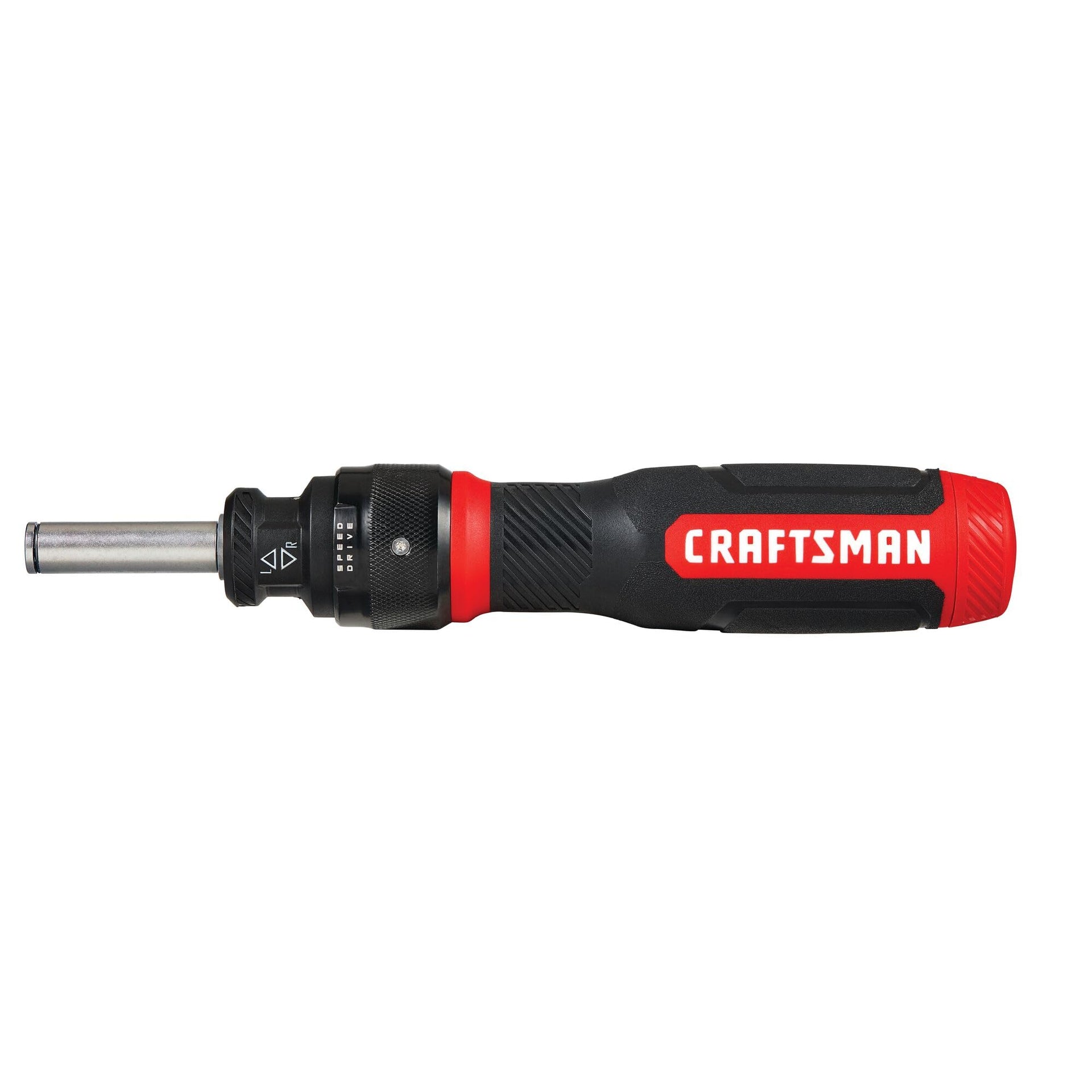Details: This 15-Piece Ratcheting Screwdriver Set delivers 2 times the speed of a standard ratcheting screwdriver with its patented SpeedDrive technology. SpeedDrive's fluid ratcheting action continuously drives or loosens fasteners with each left and right turn of the handle. The ergonomic bi-material handle is designed to optimize speed, torque, and precision with in-handle storage for quick and convenient access to bits.