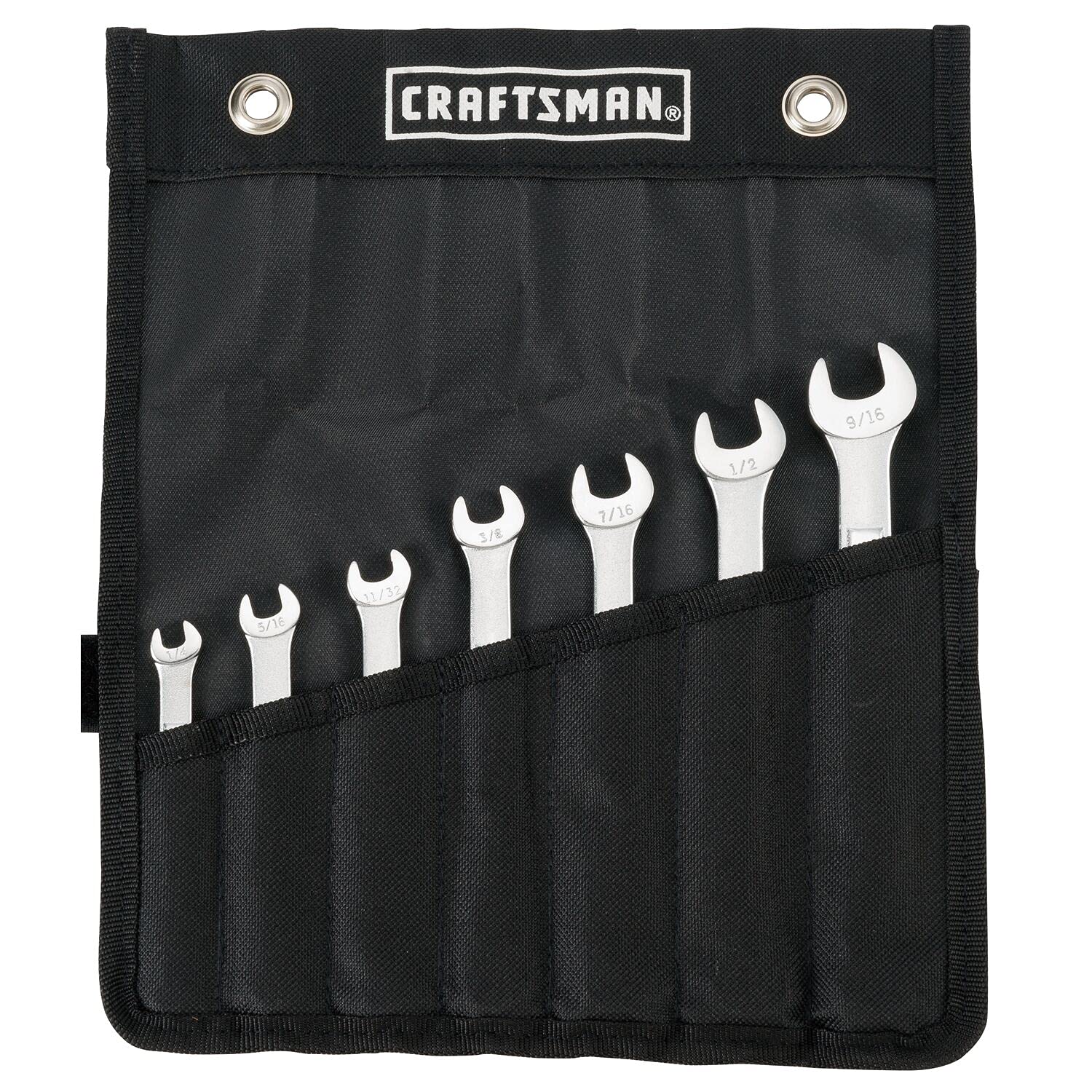 Details: The CRAFTSMAN® 7-piece Standard (SAE) Combination Wrench Set in Pouch features the iconic raised panel combination wrench design. This set delivers the quality and durability expected from the Craftsman name. This set includes the following sizes: 1/4-in, 5/16-in, 11/32-in, 3/8-in, 7/16-in, 1/2-in and 9/16-in.
