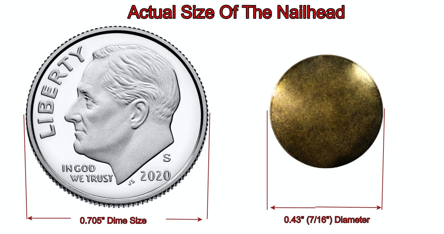 - 100 Pcs/Pack, Head Diameter [7/16 in] *** Full Length top the bottom [5/8 in] *** Shank Length under the cap to bottom [1/2 in]