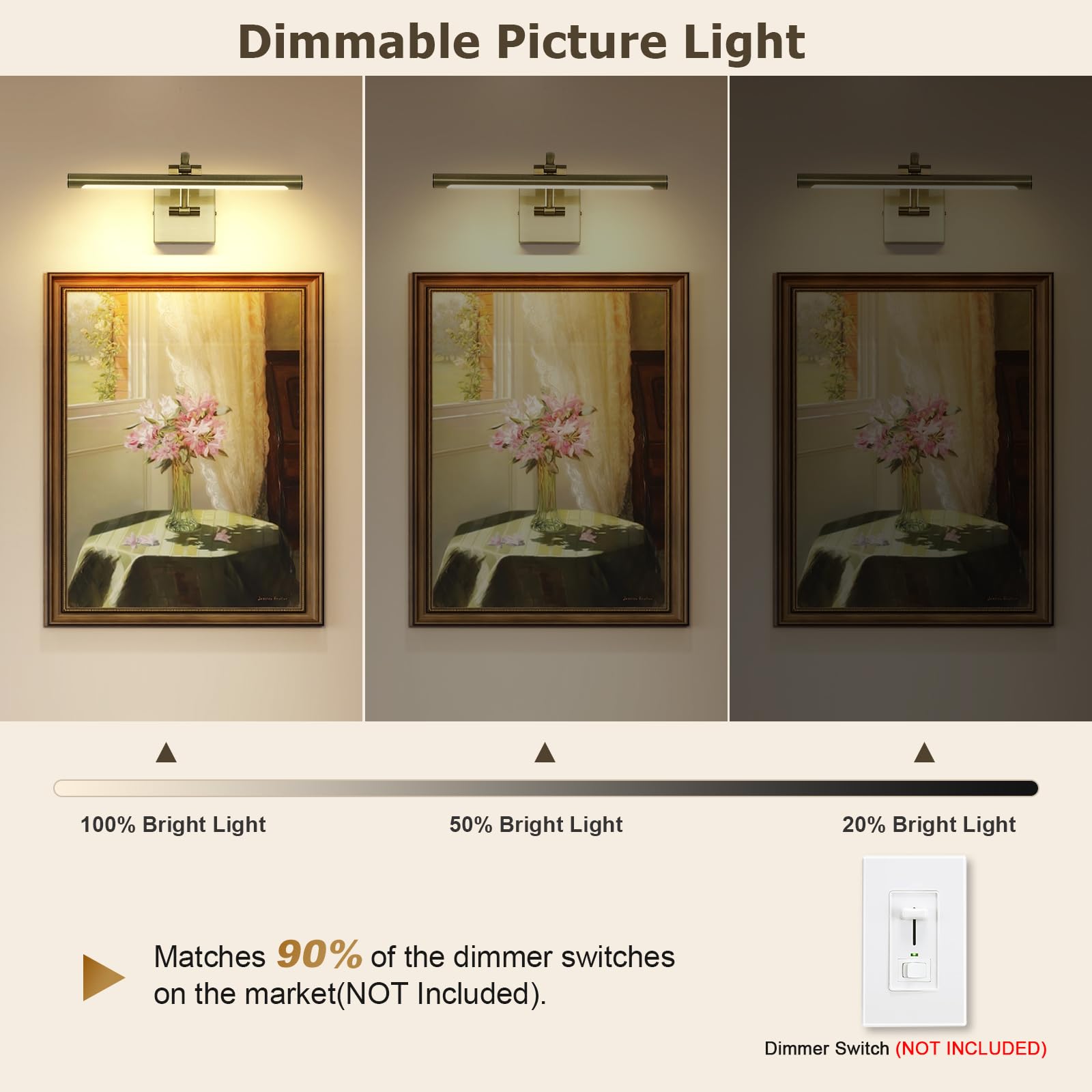 - Dimmable Picture Light: The picture lighting is dimmable with 10%-100% dimming range. The wall art light is compatible with most LED dimmers(not included), you can adjust the light freely according to your needs.