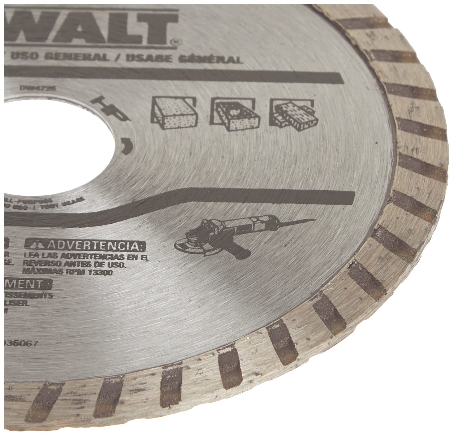 DeWalt DW4725 High Performance 4-1/2-Inch Dry Cutting Continuous Rim Diamond Saw Blade with 7/8-Inch Arbor for Masonry