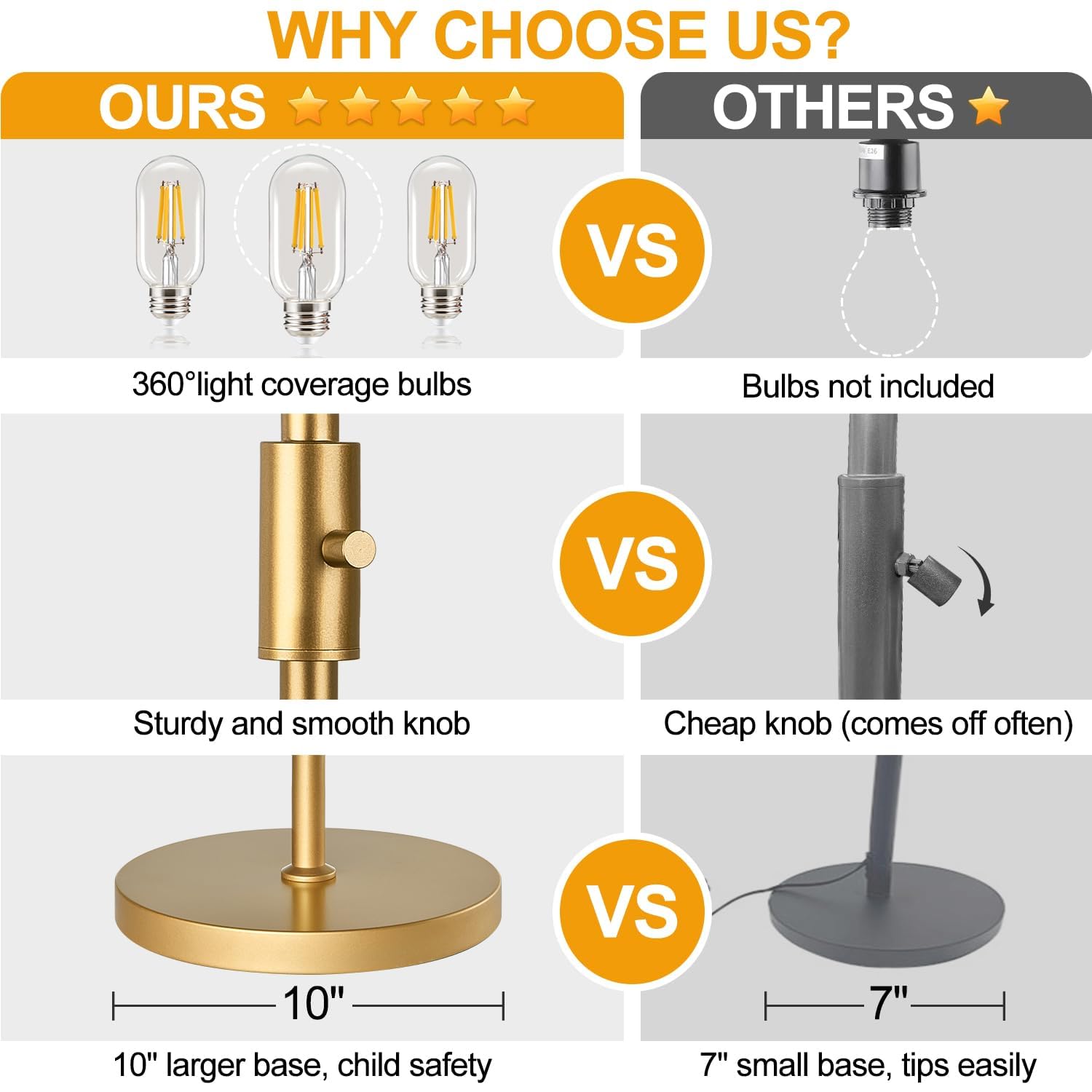 Dimmable Gold Industrial Floor Lamp, 3 Teardrop Cage LED Heads, 800 Lumens, Tall Standing Lamp for Living Room, Bedroom, Office